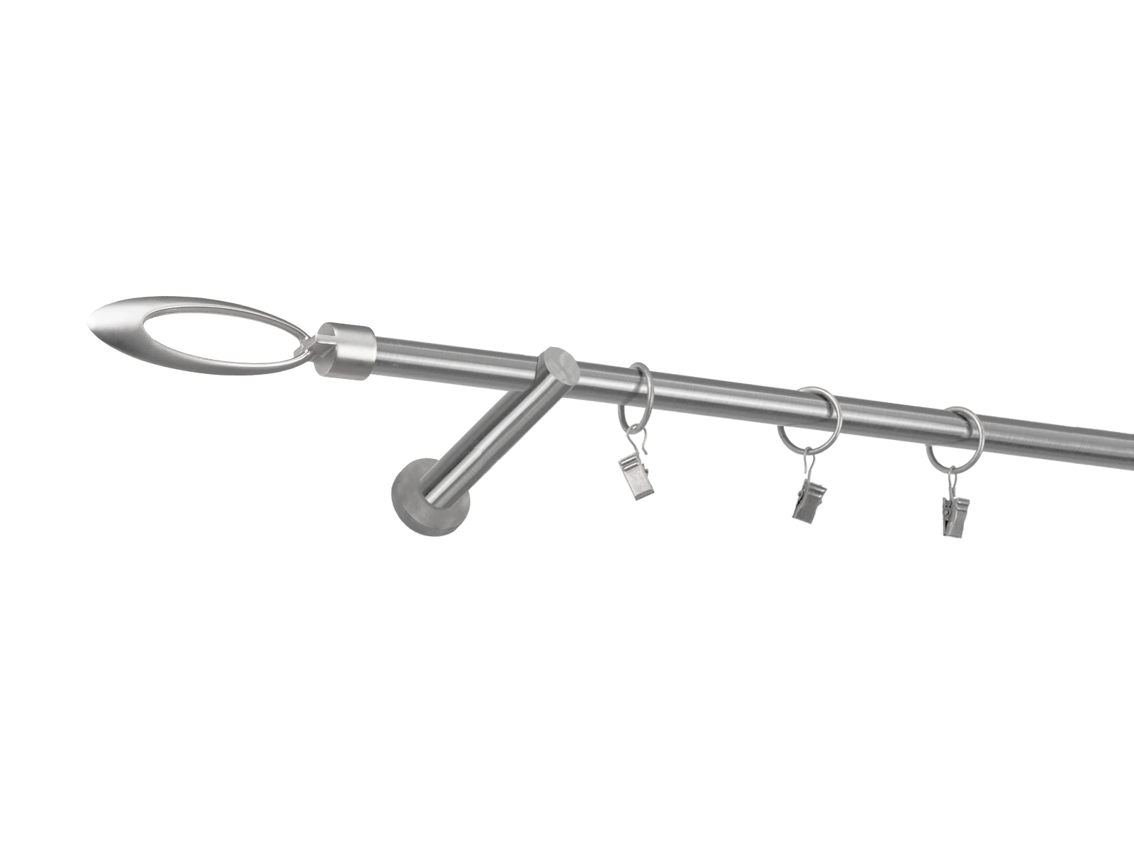 • V prípade, že ste si objednali ku garniži príslušenstvo, navlečte krúžky so štipcami na tyč., Následne dotiahnite poistné skrutky na držiaku, ktoré zabránia pohybu tyče.