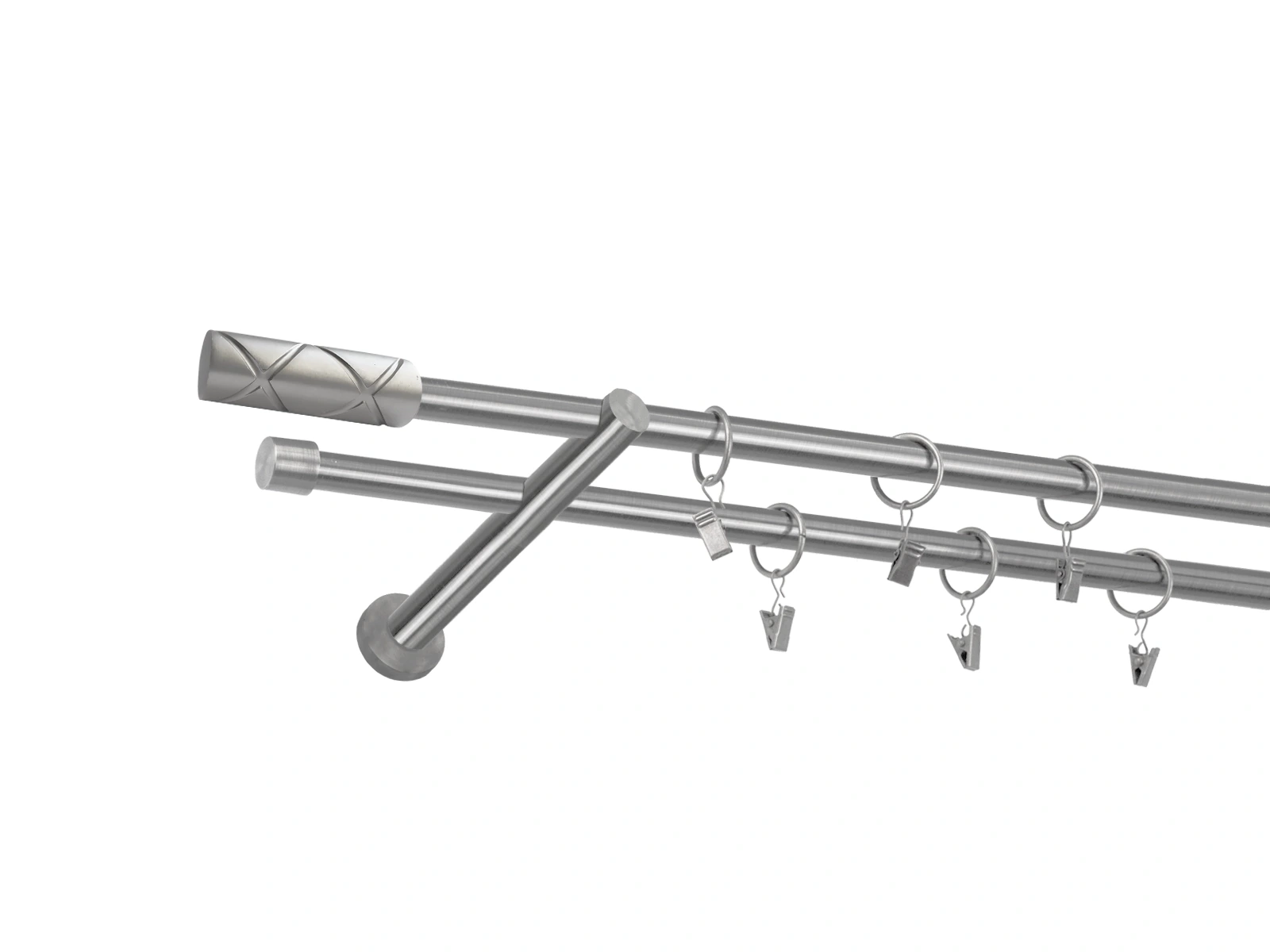 • Dĺžka 1000 mm - tyč 16mm - 1000mm - 2ks, držiak dvojitý - 2ks, koncovka - 2ks, koncovka zadná (PULLO) - 2ks, krúžok so štipcom - 18ks (pri výbere parametra príslušenstvo s krúžkami so štipcom), skrutky a hmoždinky na montáž