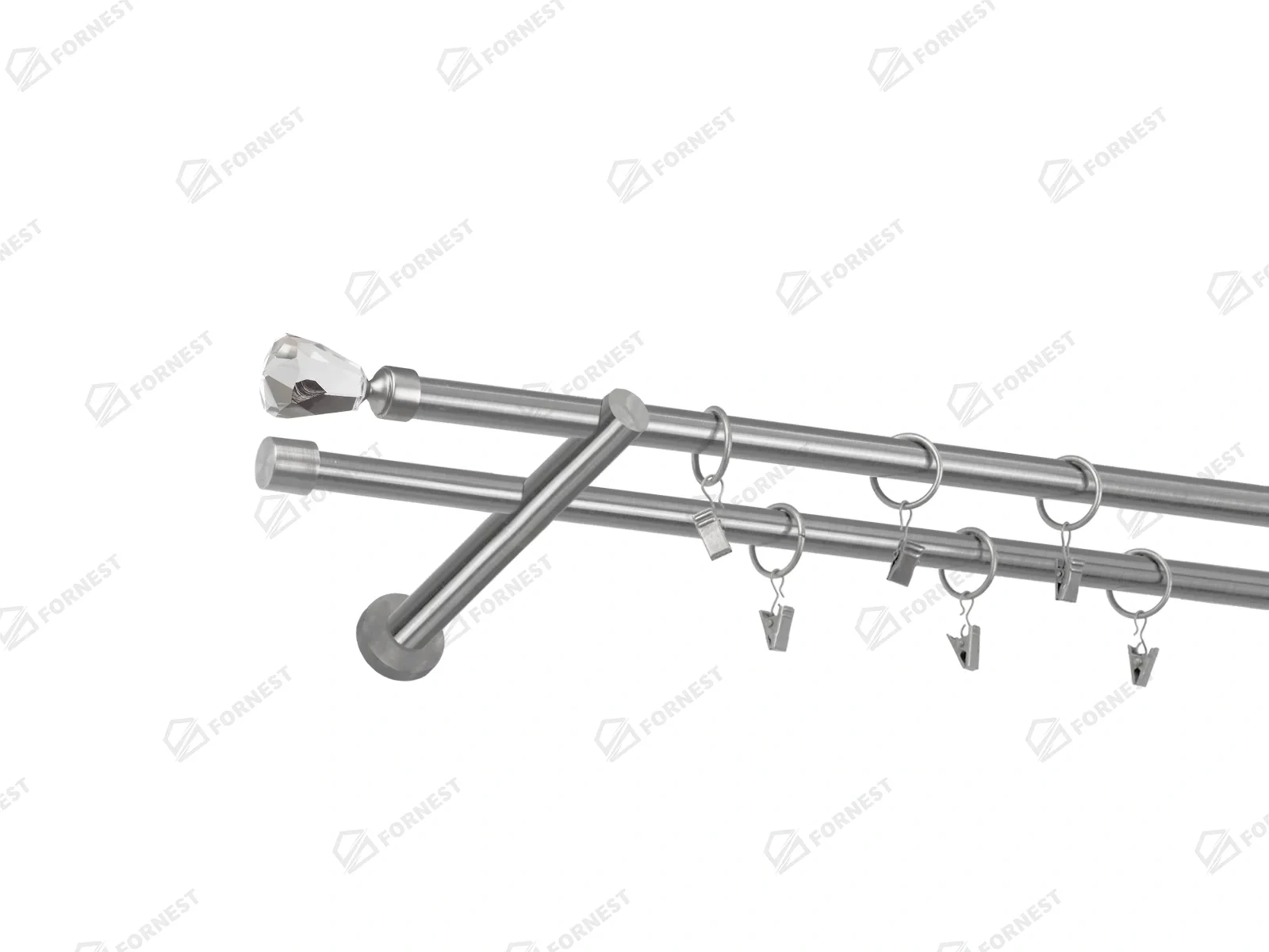 • Dĺžka 1400 mm - tyč 16mm - 1400mm - 2ks, držiak dvojitý - 2ks, koncovka - 2ks, koncovka zadná (PULLO) - 2ks, krúžok so štipcom - 26ks (pri výbere parametra príslušenstvo s krúžkami so štipcom), skrutky a hmoždinky na montáž