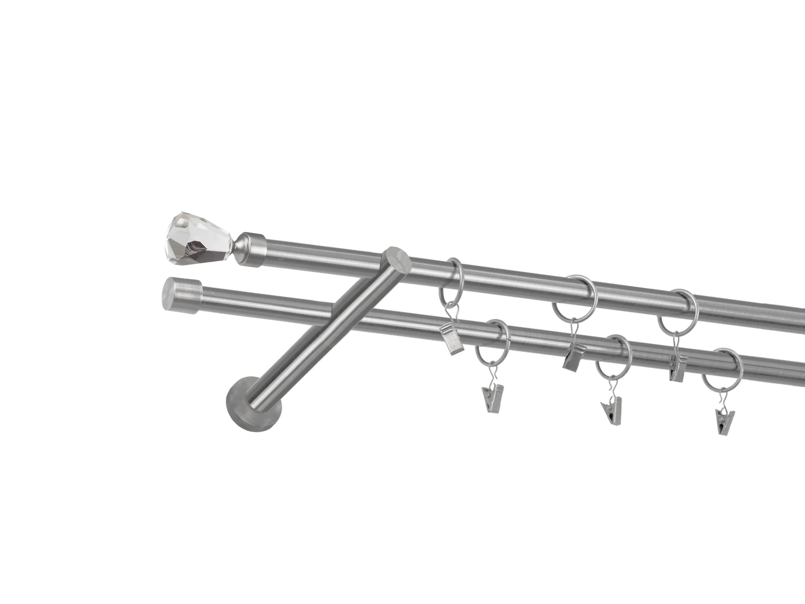 • Dĺžka 2200 mm - tyč 16mm - 2200mm - 2ks, držiak dvojitý - 2ks, koncovka - 2ks, koncovka zadná (PULLO) - 2ks, krúžok so štipcom - 42ks (pri výbere parametra príslušenstvo s krúžkami so štipcom), skrutky a hmoždinky na montáž
