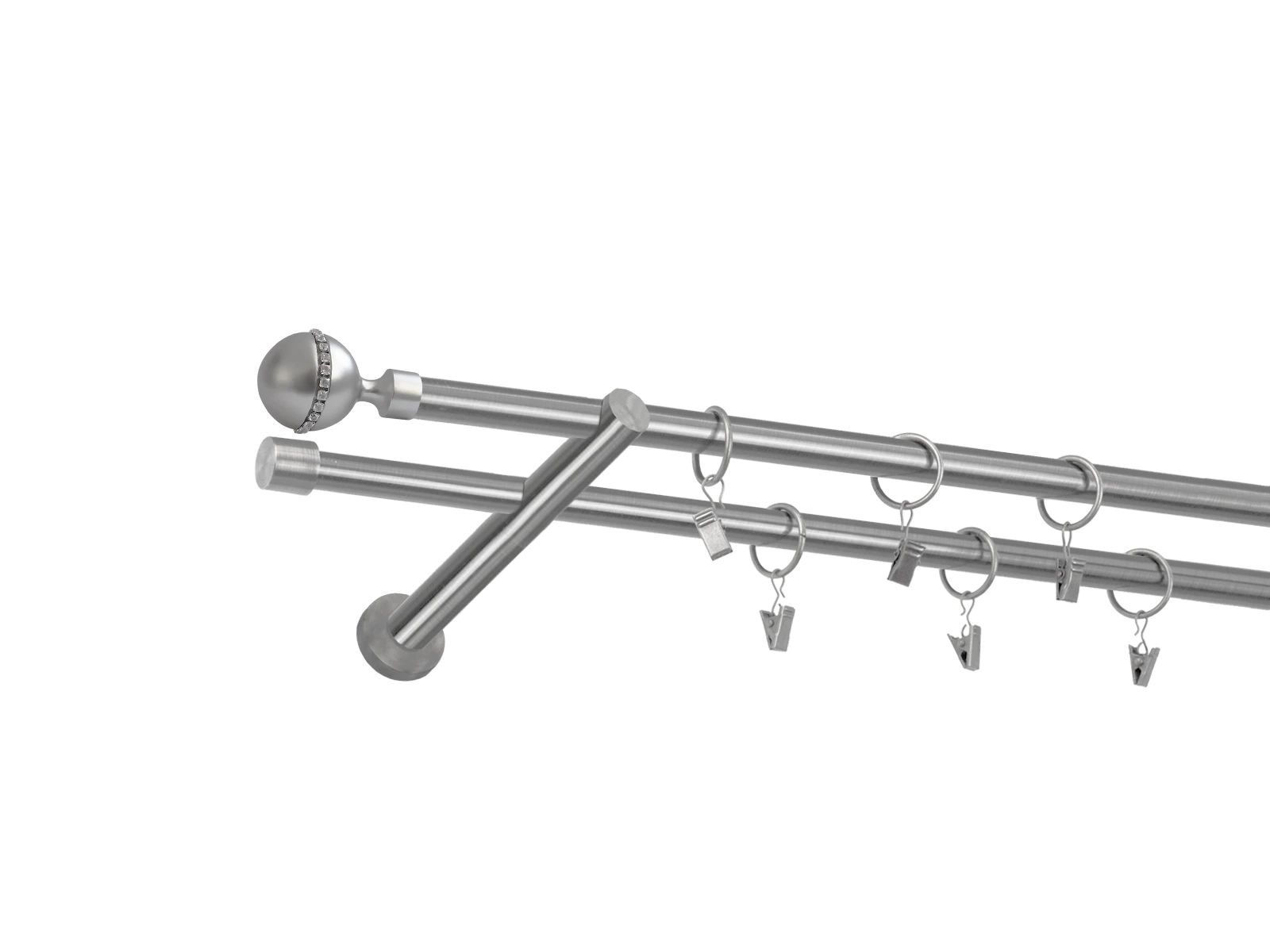 • Dĺžka 2200 mm - tyč 16mm - 2200mm - 2ks, držiak dvojitý - 2ks, koncovka - 2ks, koncovka zadná (PULLO) - 2ks, krúžok so štipcom - 42ks (pri výbere parametra príslušenstvo s krúžkami so štipcom), skrutky a hmoždinky na montáž