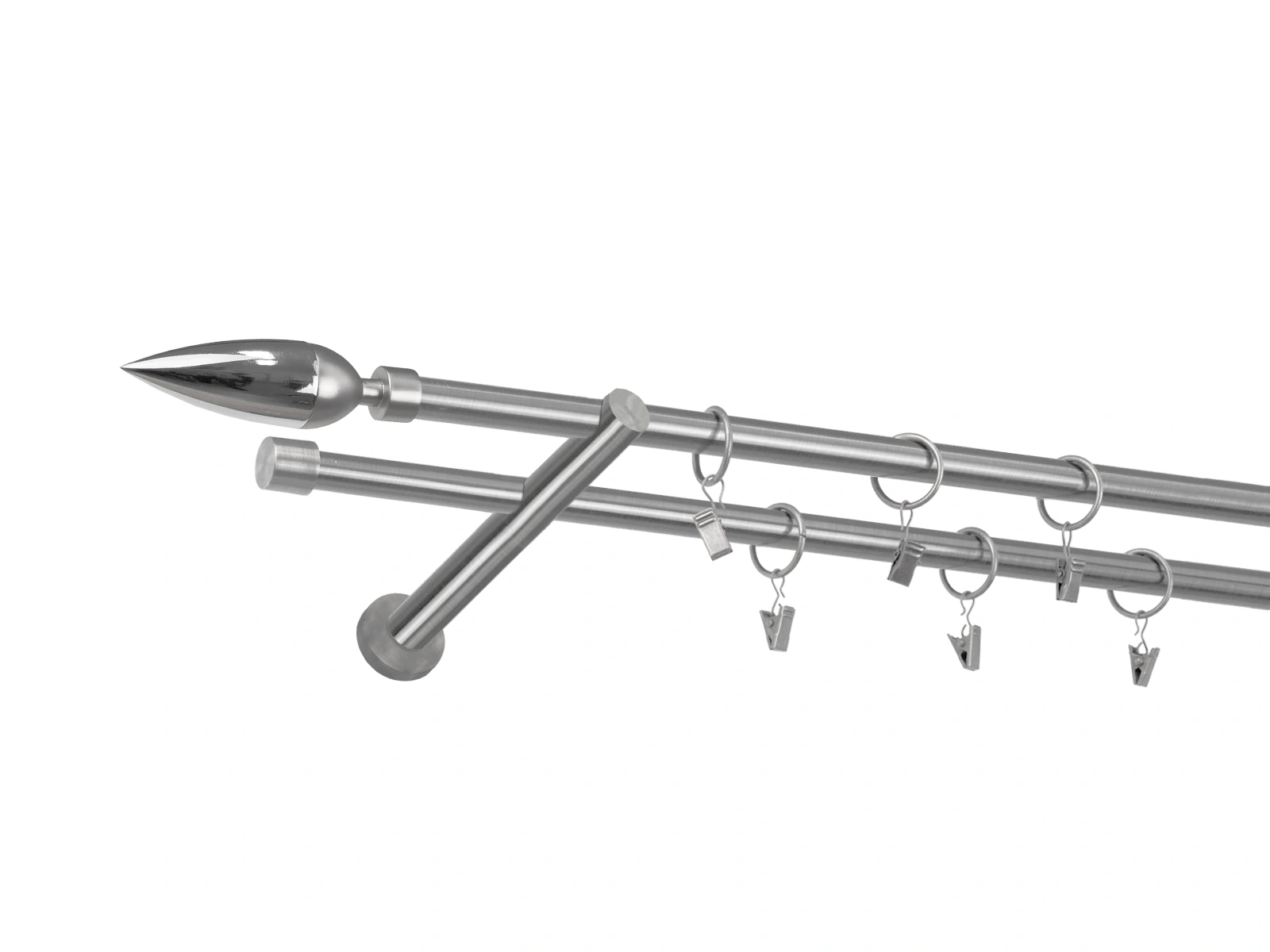 • Dĺžka 2200 mm - tyč 16mm - 2200mm - 2ks, držiak dvojitý - 2ks, koncovka - 2ks, koncovka zadná (PULLO) - 2ks, krúžok so štipcom - 42ks (pri výbere parametra príslušenstvo s krúžkami so štipcom), skrutky a hmoždinky na montáž