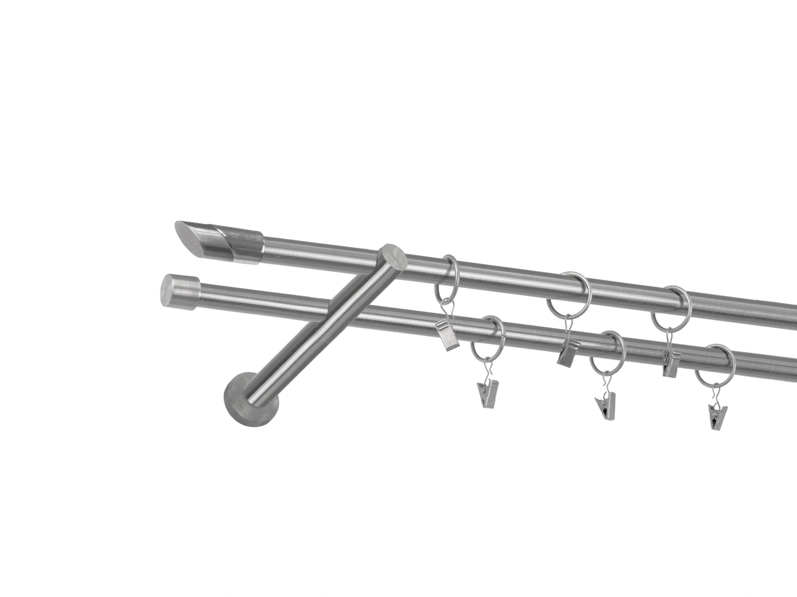 • Dĺžka 2200 mm - tyč 16mm - 2200mm - 2ks, držiak dvojitý - 2ks, koncovka - 2ks, koncovka zadná (PULLO) - 2ks, krúžok so štipcom - 42ks (pri výbere parametra príslušenstvo s krúžkami so štipcom), skrutky a hmoždinky na montáž