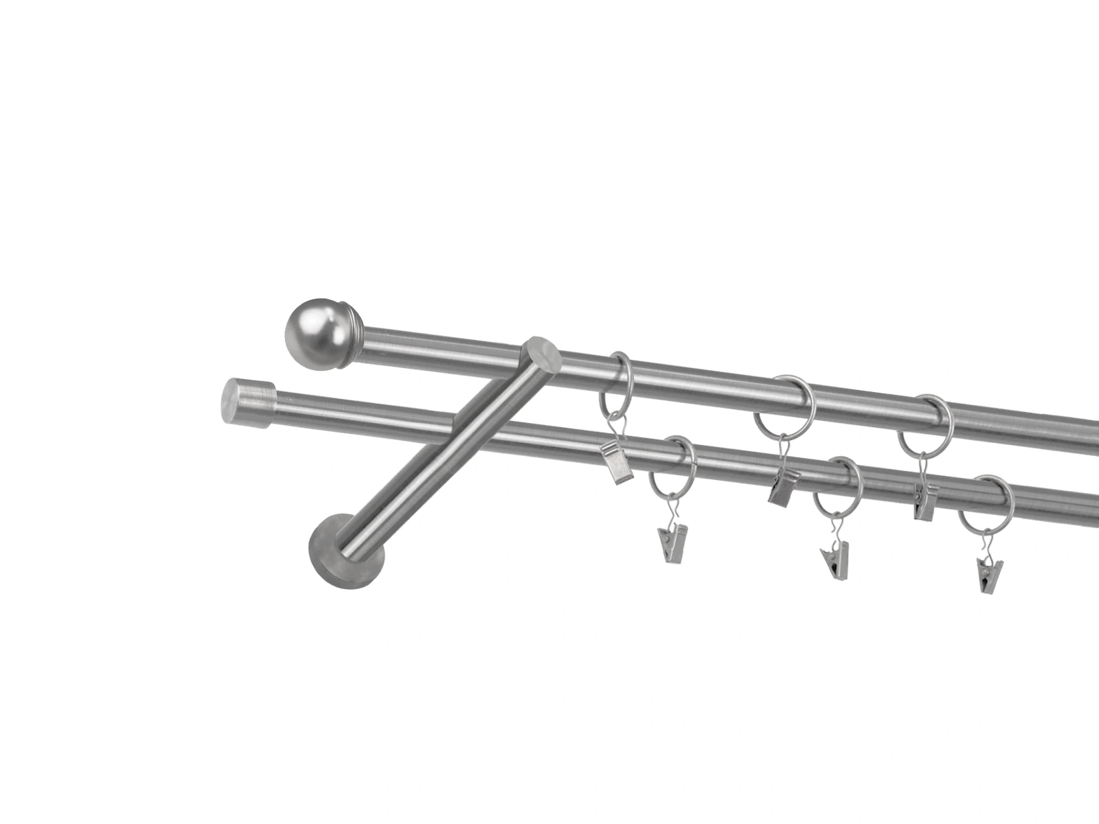 • Dĺžka 2200 mm - tyč 16mm - 2200mm - 2ks, držiak dvojitý - 2ks, koncovka - 2ks, koncovka zadná (PULLO) - 2ks, krúžok so štipcom - 42ks (pri výbere parametra príslušenstvo s krúžkami so štipcom), skrutky a hmoždinky na montáž