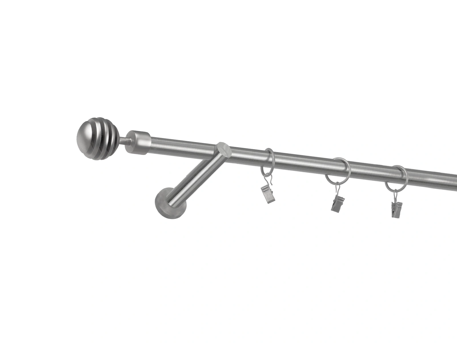 • Dĺžka 1800 mm - tyč 19mm - 1800mm - 1ks, držiak - 2ks, koncovka - 2ks, krúžok so štipcom - 17ks (pri výbere parametra príslušenstvo s krúžkami so štipcom), skrutky a hmoždinky na montáž