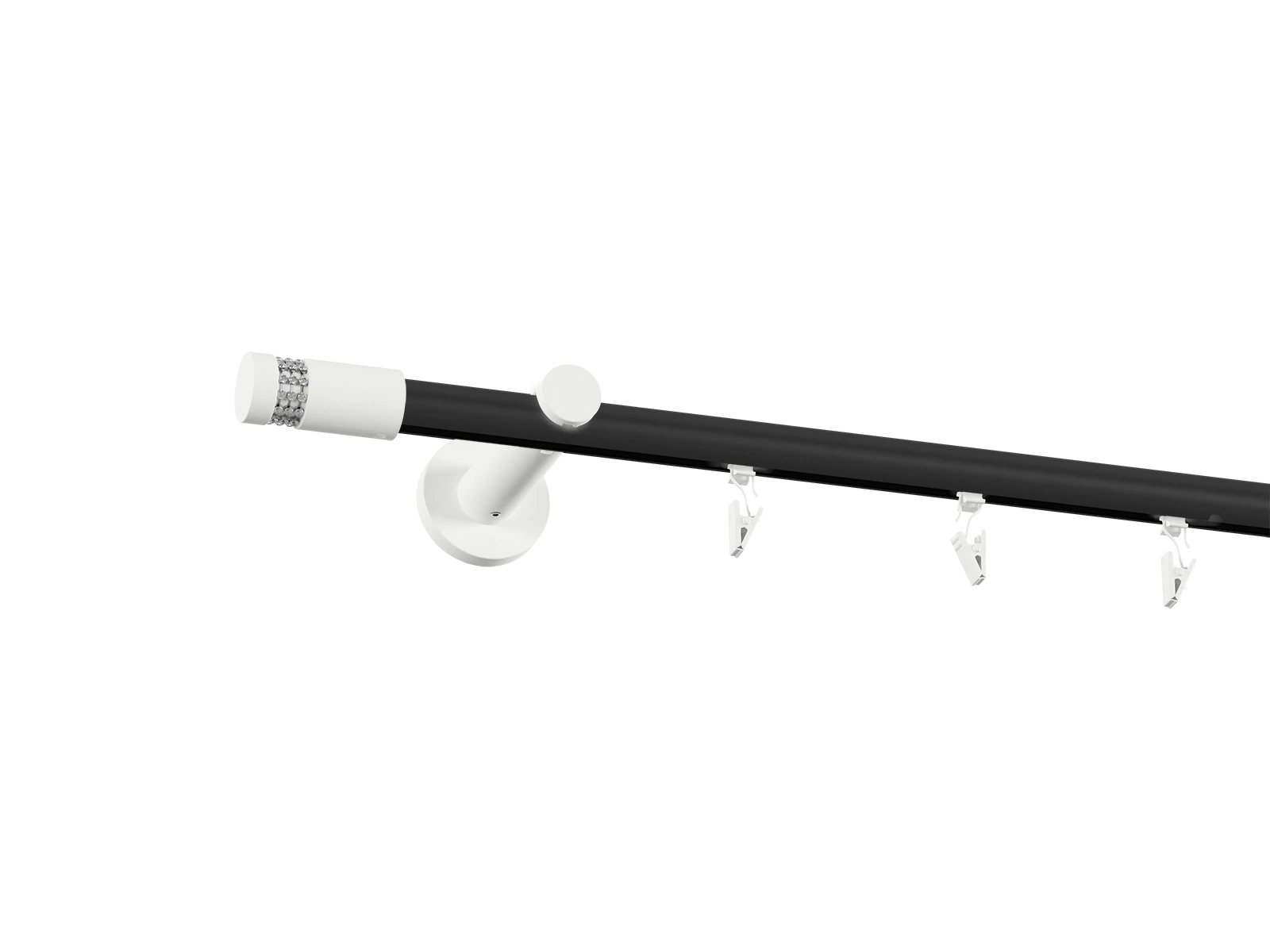 Pri tomto prevedení je tyč v čiernej farbe a príslušenstvo ako držiaky, koncovky a štipce v bielej farbe.