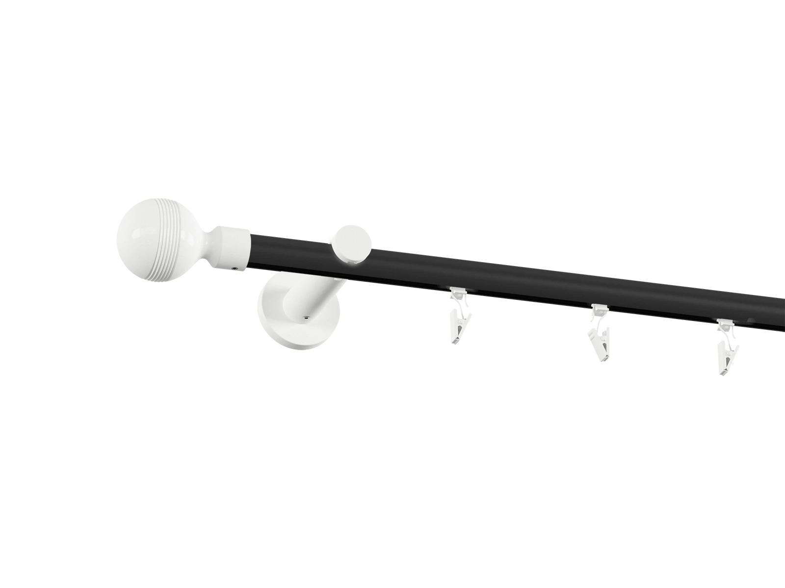Pri tomto prevedení je tyč v čiernej farbe a príslušenstvo ako držiaky, koncovky a štipce v bielej farbe.