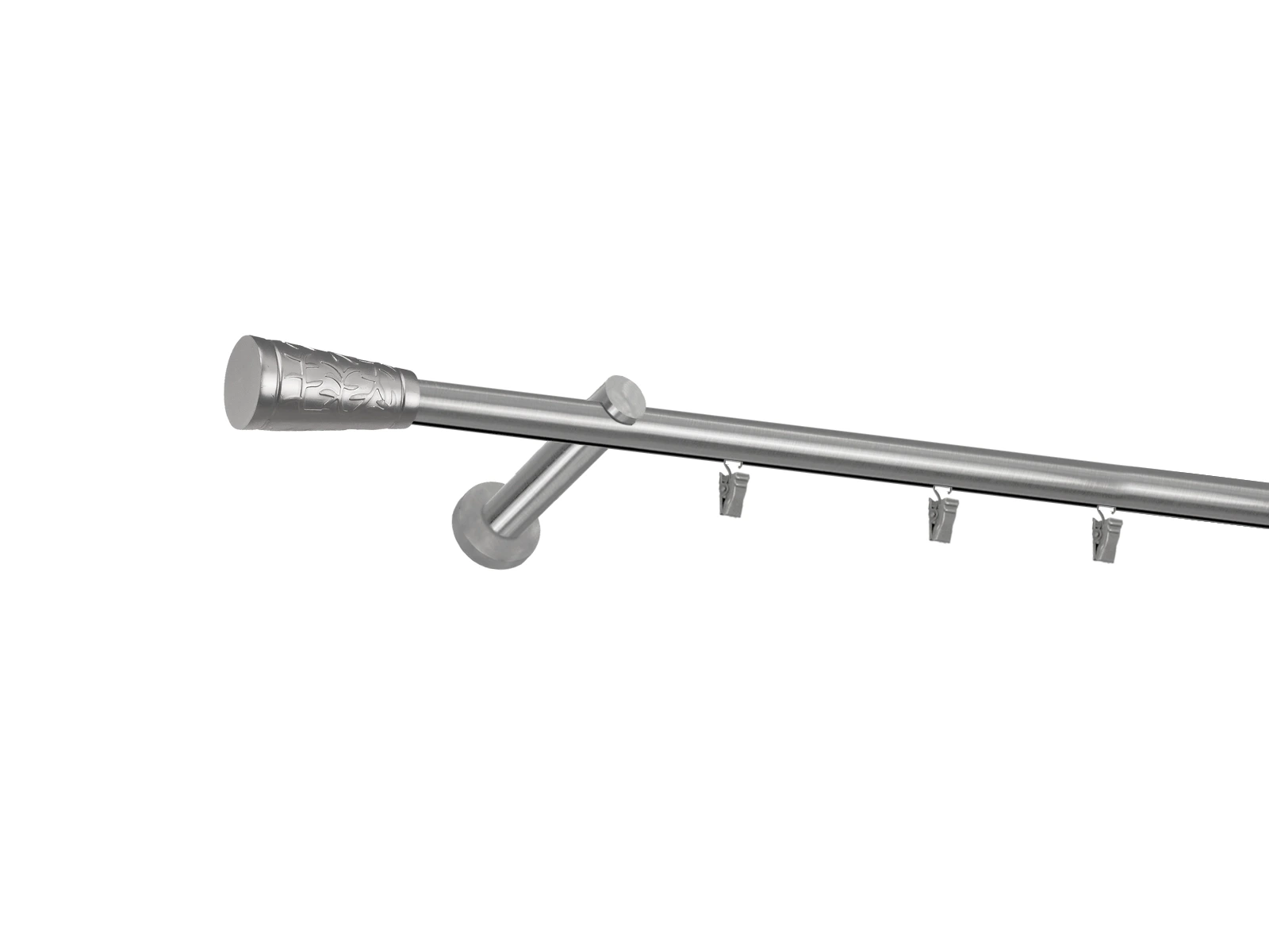 Jednoradová garniža s povrchovou úpravou - odtieň satin-nikel (matné striebro). Celokovové garniže s kvalitnou povrchovou úpravou - galvanické pokovovanie. Galvanické pokovovanie zabezpečuje vyššiu povrchovú tvrdosť, zvýšenú dolnosť voči poškriabaniu, hladký povrch. Dodávané sú v kompletoch.
