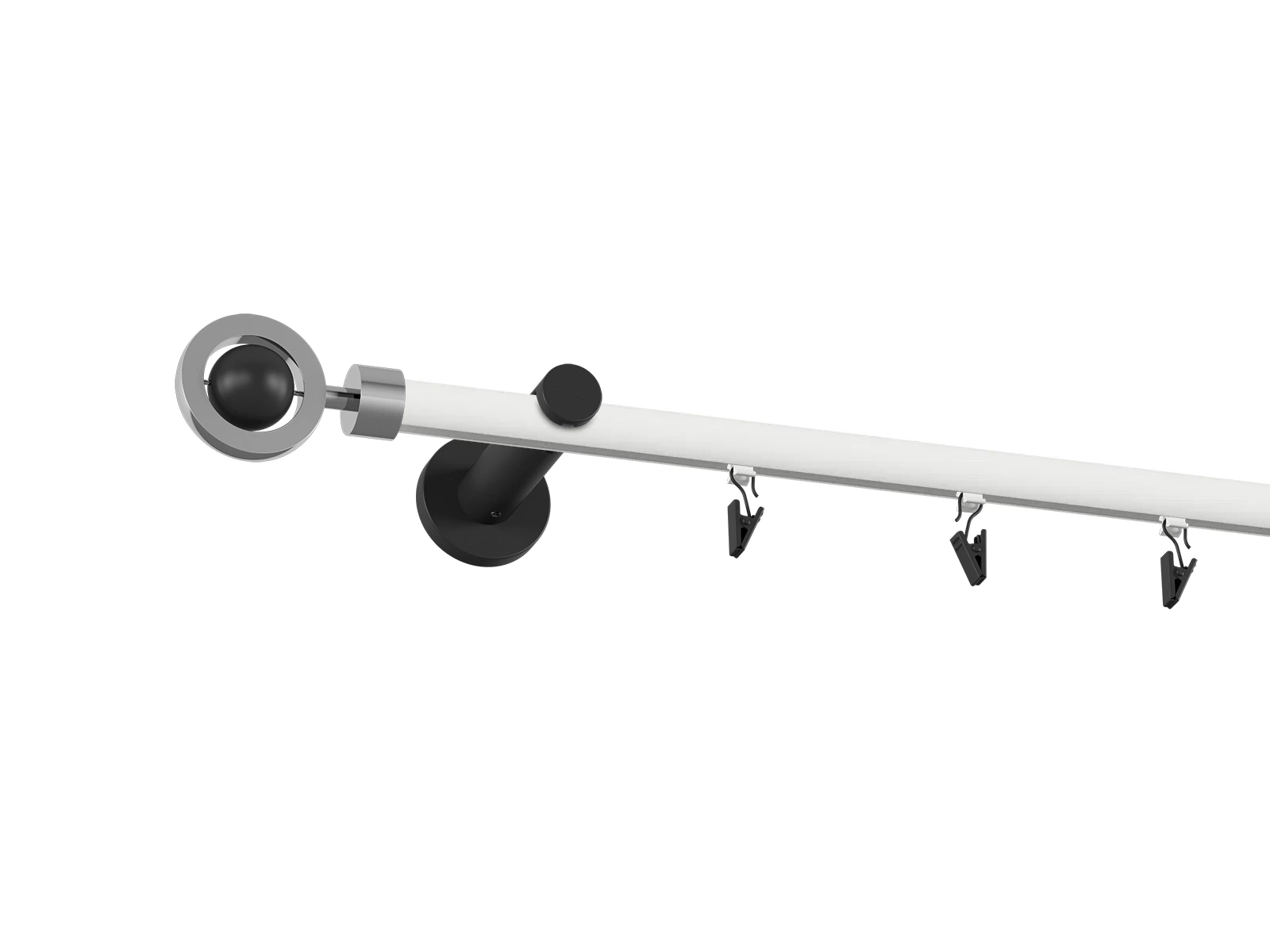 Čierne a biele kovové rúrky pre garniže s klasickým a drážkovým profilom
