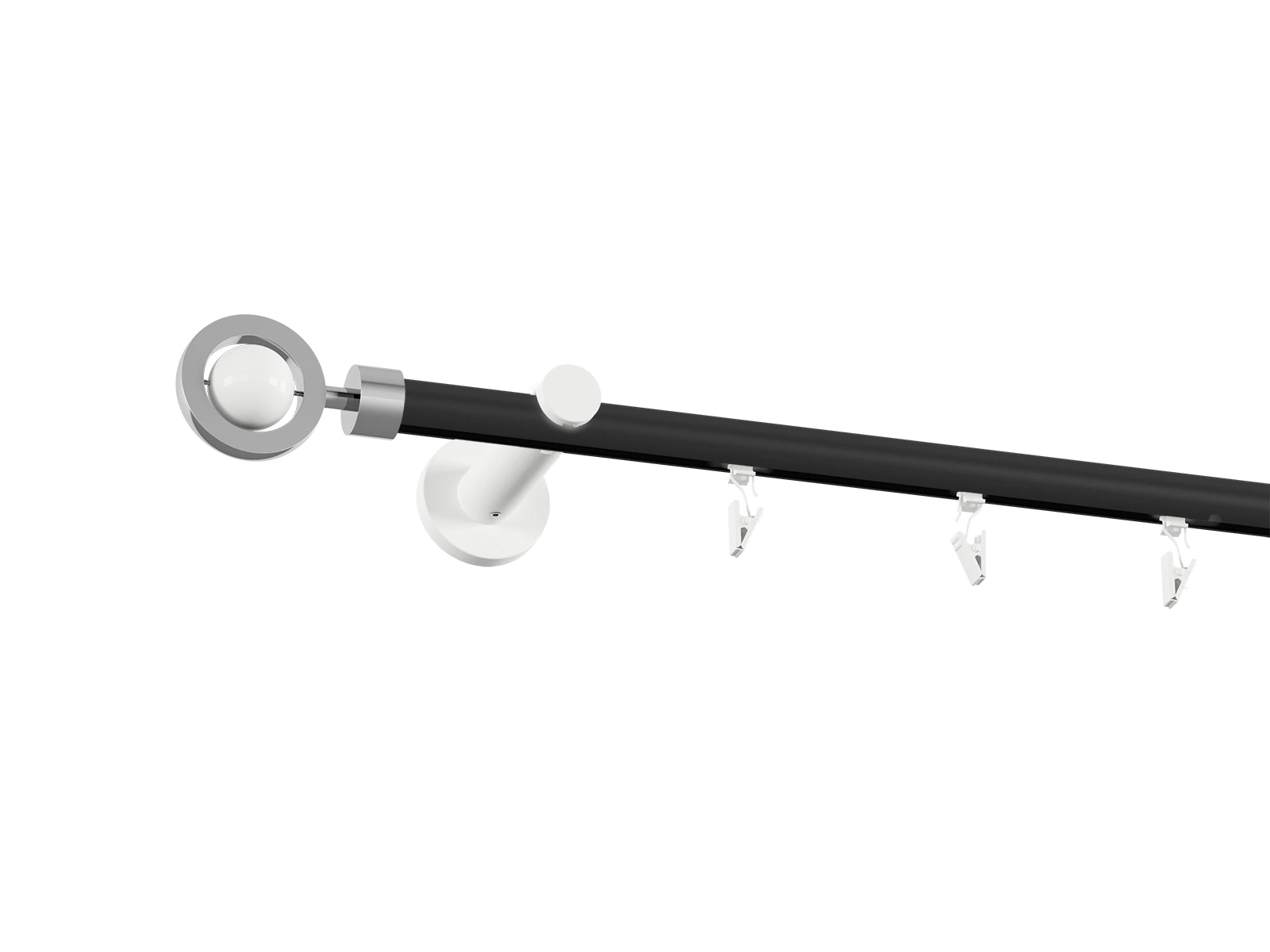 Pri tomto prevedení je tyč v čiernej farbe a príslušenstvo ako držiaky, koncovky a štipce v bielej farbe.