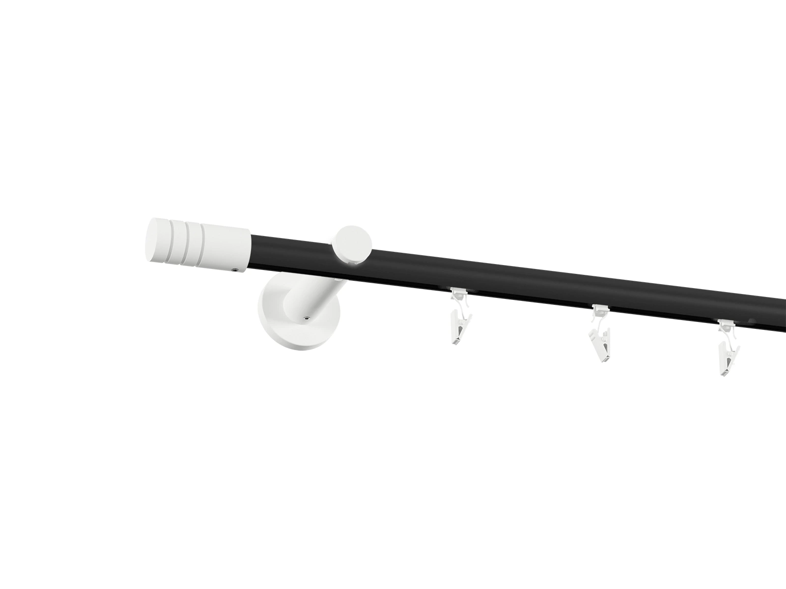 Pri tomto prevedení je tyč v čiernej farbe a príslušenstvo ako držiaky, koncovky a štipce v bielej farbe.