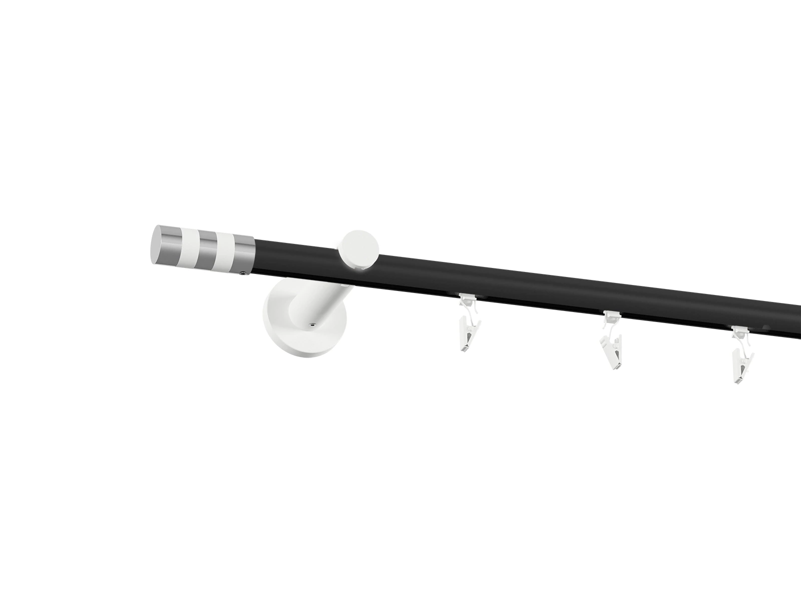 Pri tomto prevedení je tyč v čiernej farbe a príslušenstvo ako držiaky, koncovky a štipce v bielej farbe.
