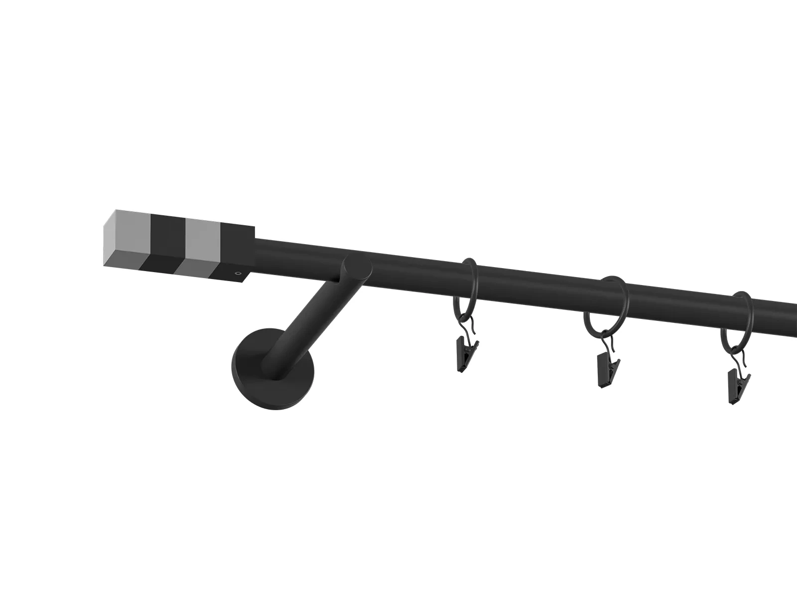 Pri tomto prevedení je tyč čierna a koncovky, držiaky a krúžky so štipcami biele.