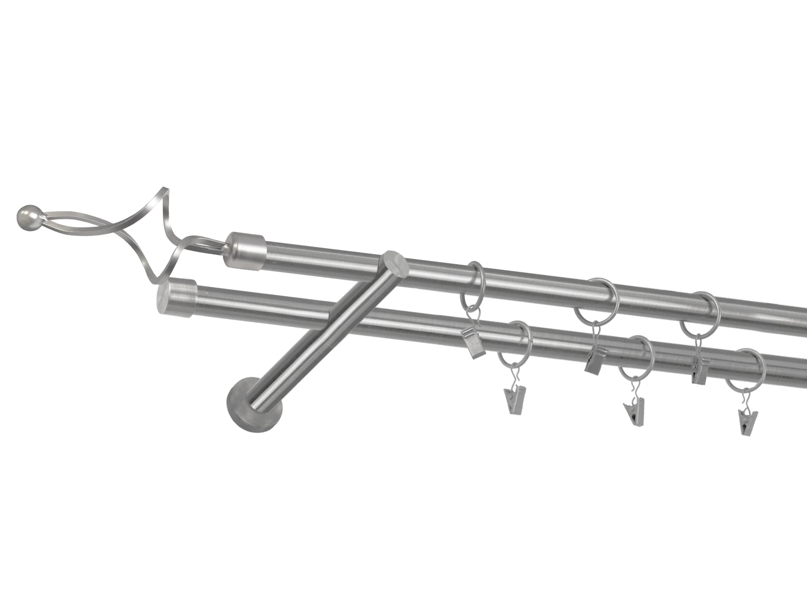 Kvalitné kovové dvojradové garniže o priemere tyčí 19x19mm. Všetky tyče, koncovky a držiaky sú s povrchovou úpravou galvanizácie.