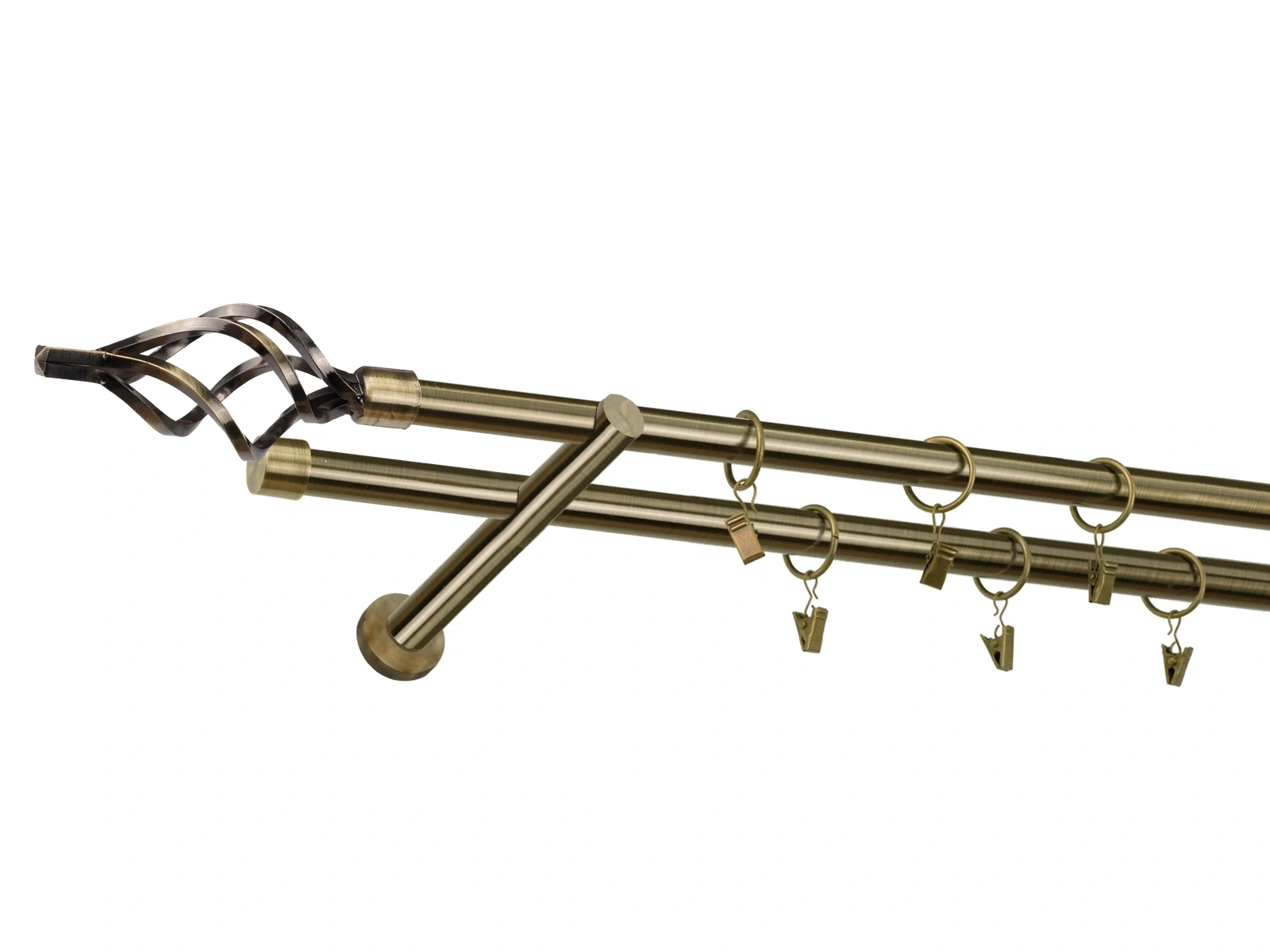 Krúžky a štipce sú vyrobené z kovu, čo zaručuje ich pevnosť, odolnosť a dlhodobé používanie bez deformácií. Počet krúžkov a štipcov je prispôsobený dĺžke garniže, aby bola zabezpečená optimálna funkčnosť a rovnomerné rozloženie závesov či záclon.