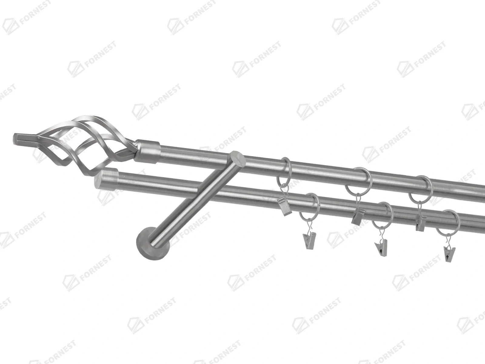 • Dĺžka 1400 mm - tyč 19mm - 1400mm - 2ks, držiak dvojitý - 2ks, koncovka - 2ks, koncovka zadná (PULLO) - 2ks, krúžok so štipcom - 26ks (pri výbere parametra príslušenstvo s krúžkami so štipcom), skrutky a hmoždinky na montáž