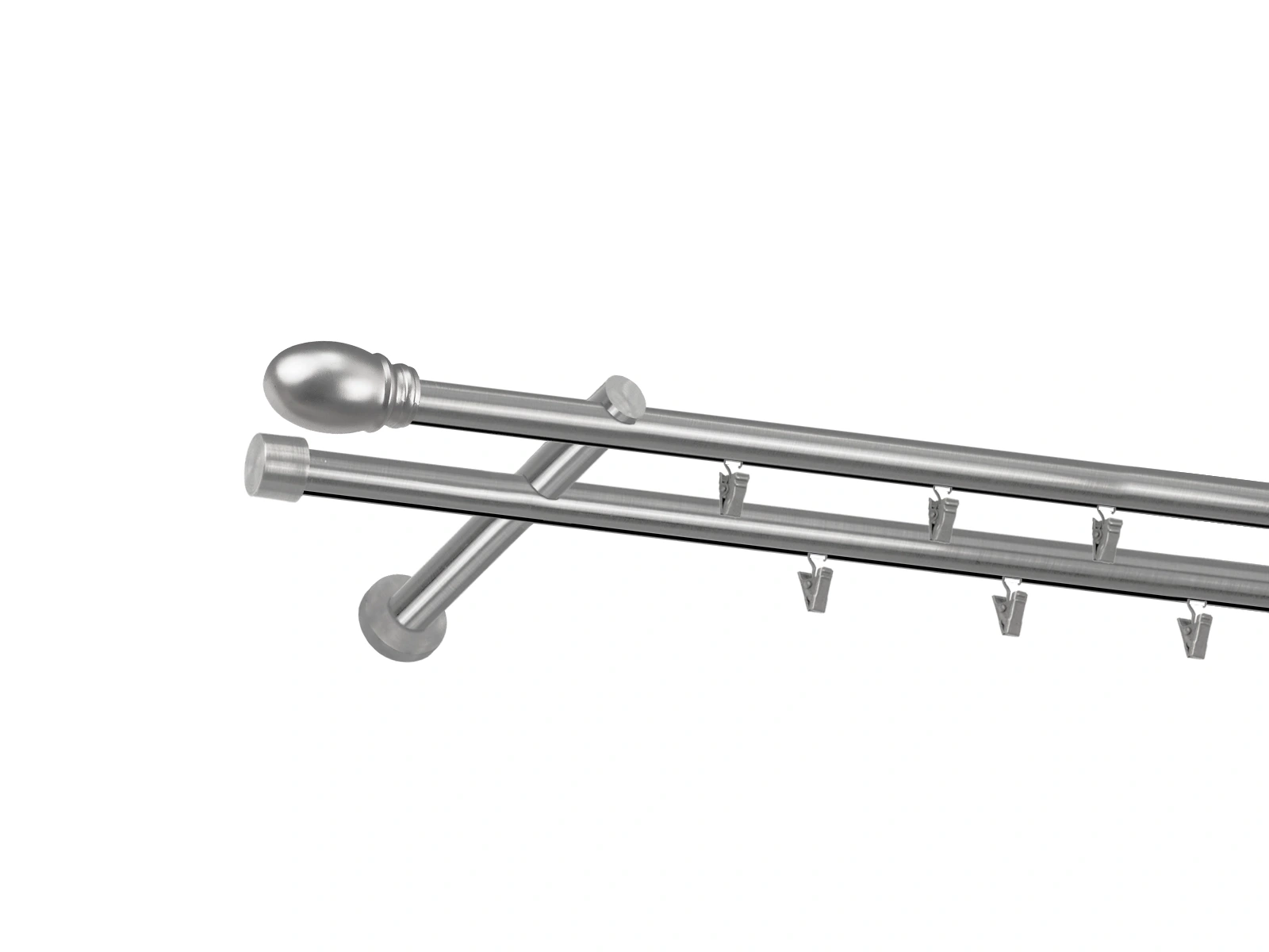 Dvojradová garniža s povrchovou úpravou - odtieň satin-nikel (matné striebro). Celokovové garniže s kvalitnou povrchovou úpravou - galvanické pokovovanie. Galvanické pokovovanie zabezpečuje vyššiu povrchovú tvrdosť, zvýšenú dolnosť voči poškriabaniu, hladký povrch. Dodávané sú v kompletoch.