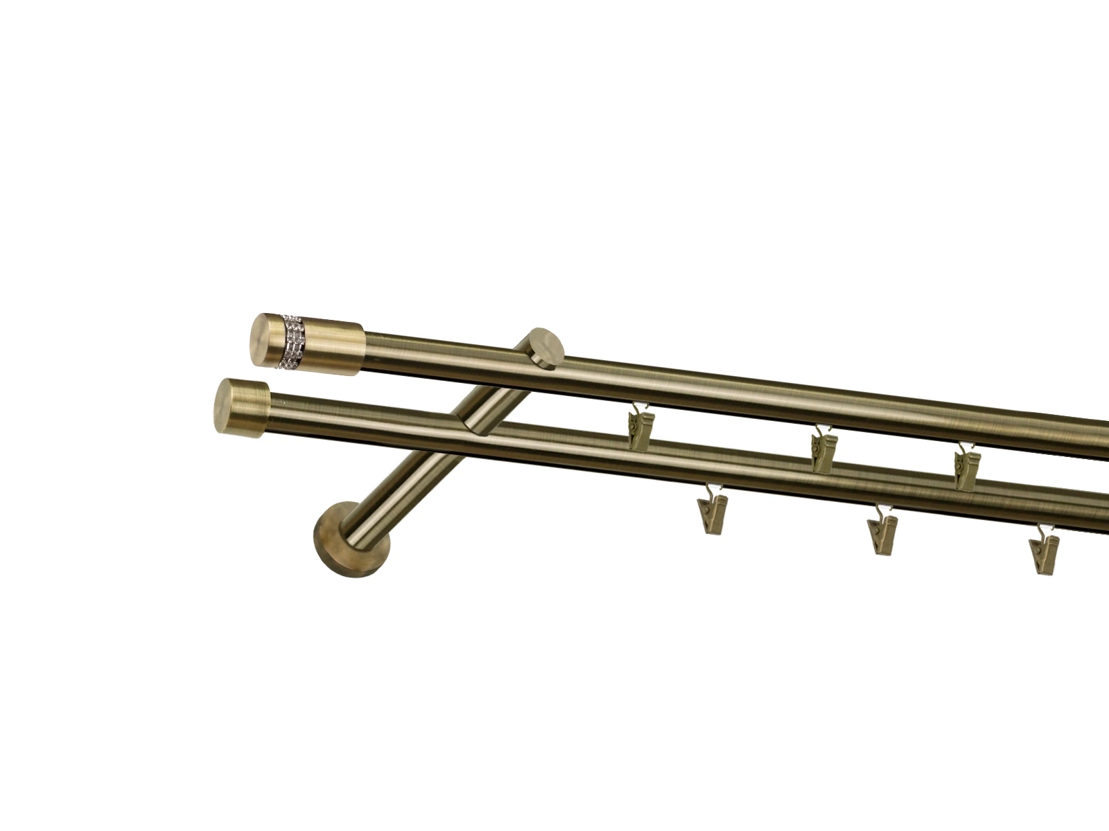 • Dĺžka 1600 mm - tyč 19mm - 1600mm - 2ks, držiak dvojitý - 2ks, koncovka - 2ks, koncovka zadná (PULLO) - 2ks, krúžok so štipcom - 30ks (pri výbere parametra príslušenstvo s krúžkami so štipcom), skrutky a hmoždinky na montáž