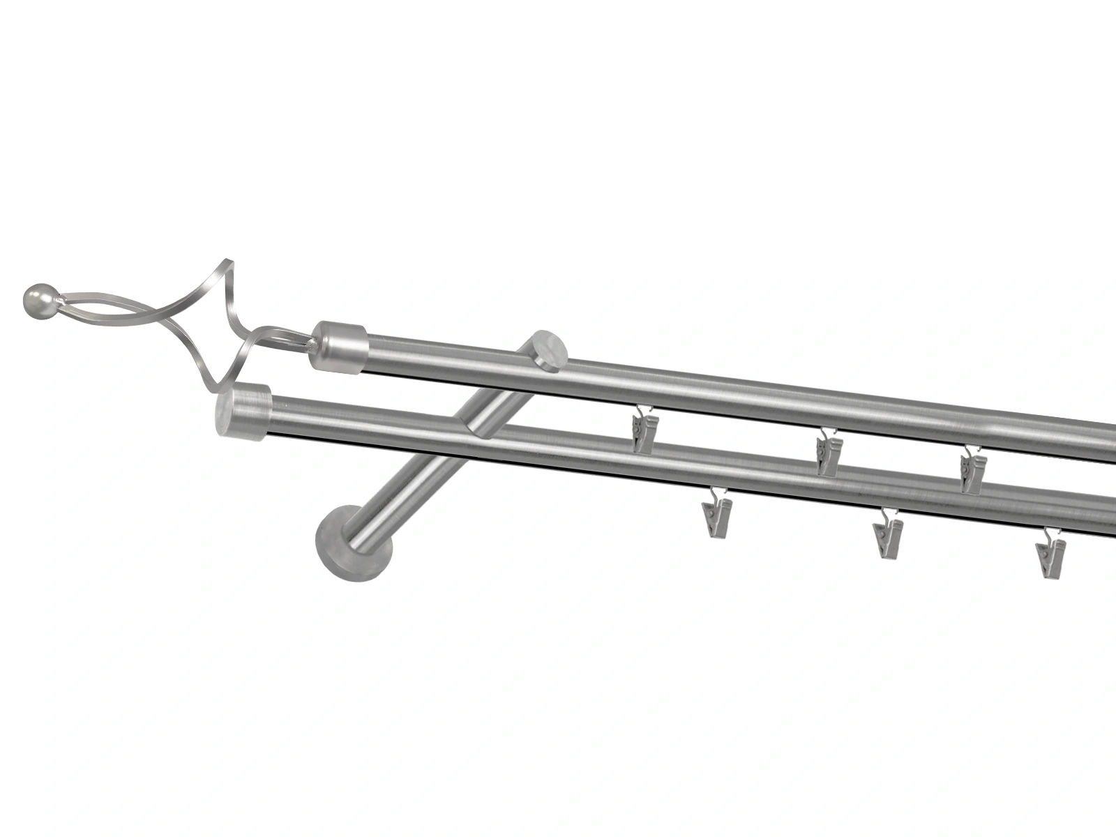 Dvojradová garniža s povrchovou úpravou - odtieň satin-nikel (matné striebro). Celokovové garniže s kvalitnou povrchovou úpravou - galvanické pokovovanie. Galvanické pokovovanie zabezpečuje vyššiu povrchovú tvrdosť, zvýšenú dolnosť voči poškriabaniu, hladký povrch. Dodávané sú v kompletoch.