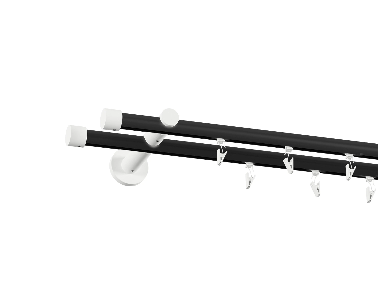 Čierne a biele kovové rúrky pre garniže s klasickým a drážkovým profilom
