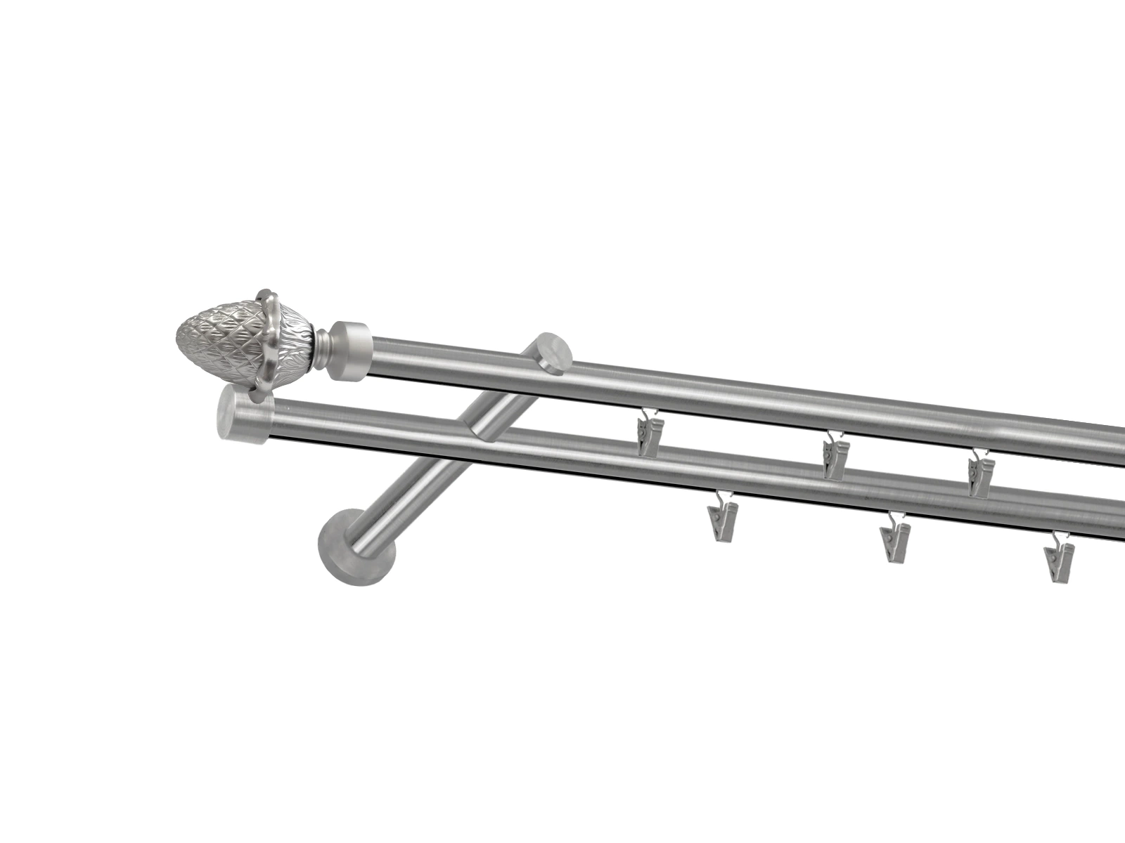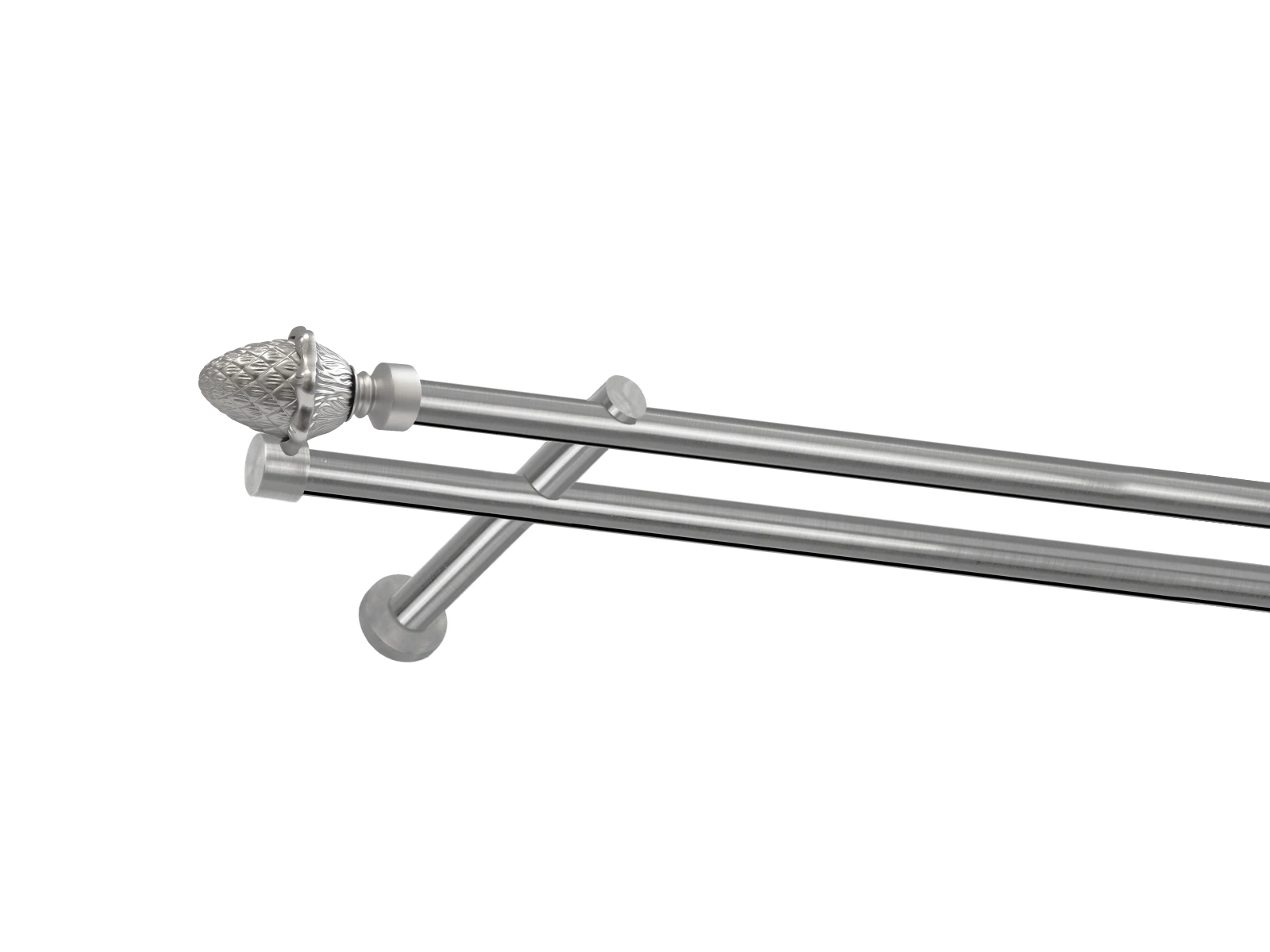 Dvojradová garniža s povrchovou úpravou - odtieň satin-nikel (matné striebro). Celokovové garniže s kvalitnou povrchovou úpravou - galvanické pokovovanie. Galvanické pokovovanie zabezpečuje vyššiu povrchovú tvrdosť, zvýšenú dolnosť voči poškriabaniu, hladký povrch. Dodávané sú v kompletoch.