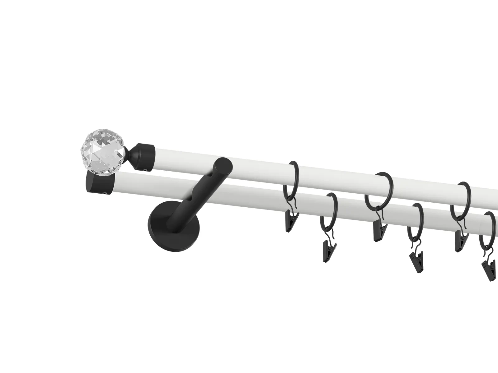 Na výber je viacero typov koncoviek a držiakov, čo umožňuje prispôsobiť garnižu presne podľa štýlu interiéru - od jednoduchých a nenápadných tvarov až po dizajnovejšie ukončenia, ktoré môžu slúžiť aj ako dekoratívny prvok. Pri prevedení bielo čiernej tyče je tyč biela a koncovky, držiaky a štipce s krúžkami čierne. Veľkou výhodou obyčajnej tyče je jej univerzálnosť. Ak máte závesy, v ktorých sú už našité kovové alebo textilné očká (krúžky), nie je potrebné dokupovať krúžky so štipcami. Záves stačí jednoducho nasunúť priamo na tyč, čo šetrí čas aj náklady a zároveň zabezpečuje čistý vzhľad.