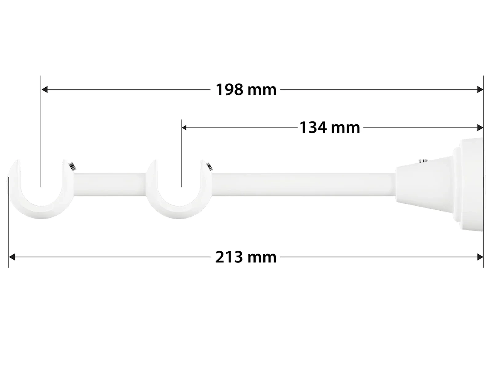 V prípade, že plánujete garnižu umiestniť medzi 2 steny, overte či Vám vojde medzi steny tak, že sčítate dĺžku tyče (B) a 2x dĺžku koncovky (X). Výsledná hodnota Vám určí presnú dĺžku garniže (C) vrátane nasadených koncoviek.