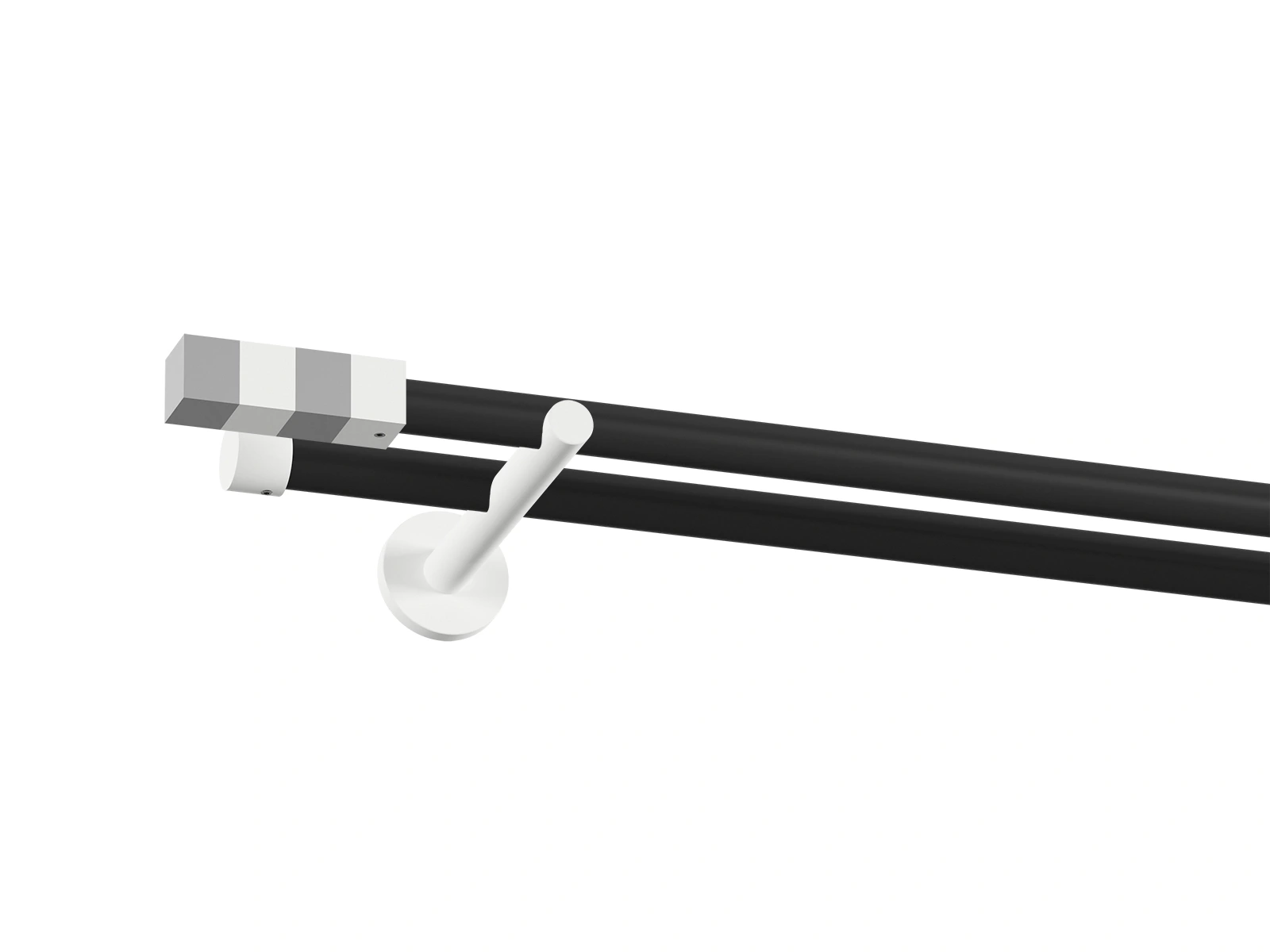 Pri prevedení čierno bielej tyče je tyč čierna a koncovky, držiaky a štipce s krúžkami biele.