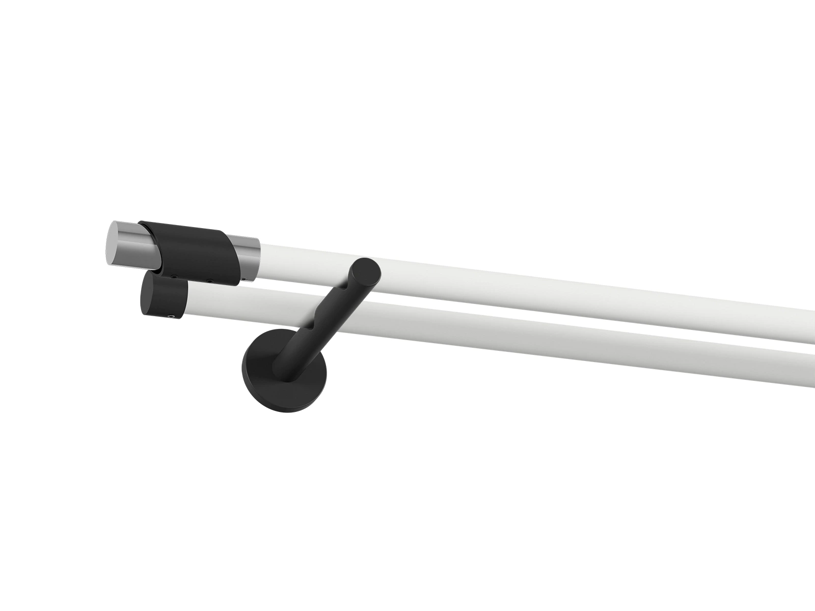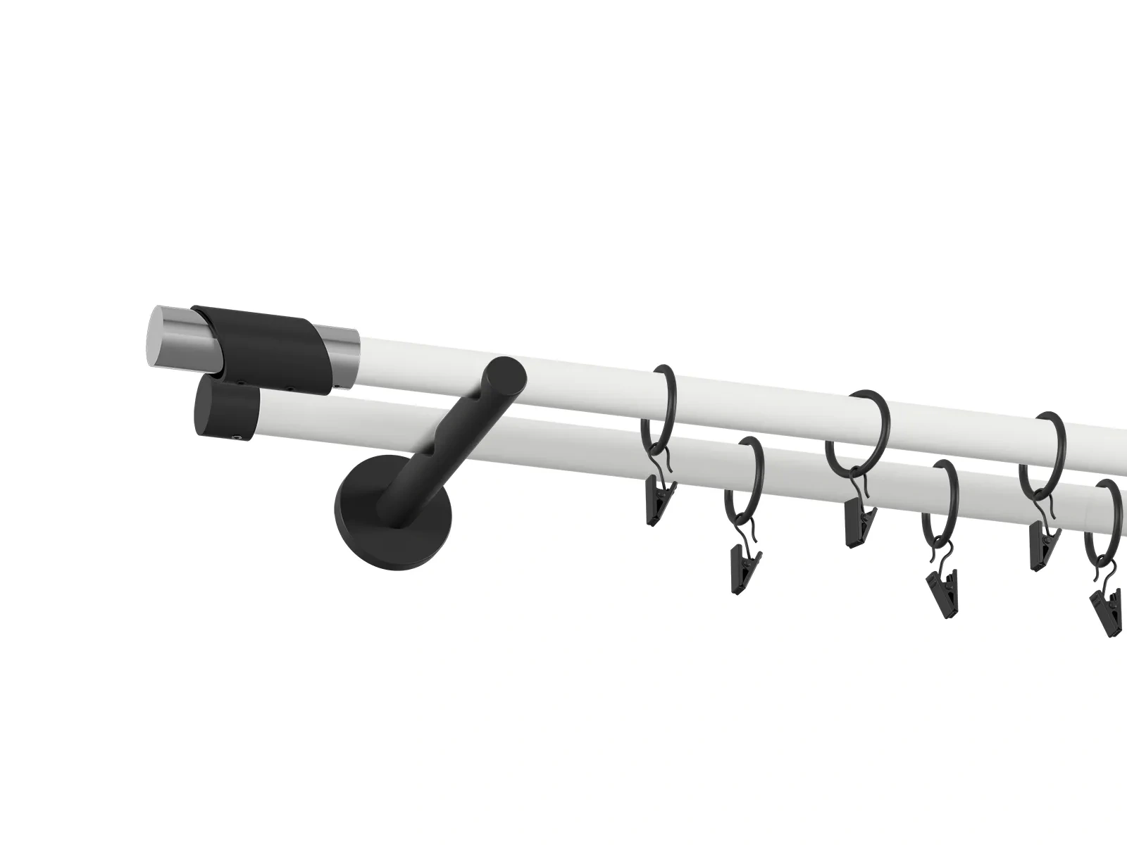 Na výber je viacero typov koncoviek a držiakov, čo umožňuje prispôsobiť garnižu presne podľa štýlu interiéru - od jednoduchých a nenápadných tvarov až po dizajnovejšie ukončenia, ktoré môžu slúžiť aj ako dekoratívny prvok. Pri prevedení bielo čiernej tyče je tyč biela a koncovky, držiaky a štipce s krúžkami čierne. Veľkou výhodou obyčajnej tyče je jej univerzálnosť. Ak máte závesy, v ktorých sú už našité kovové alebo textilné očká (krúžky), nie je potrebné dokupovať krúžky so štipcami. Záves stačí jednoducho nasunúť priamo na tyč, čo šetrí čas aj náklady a zároveň zabezpečuje čistý vzhľad.