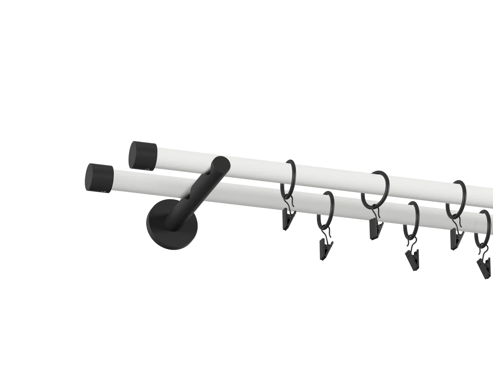 Na výber je viacero typov koncoviek a držiakov, čo umožňuje prispôsobiť garnižu presne podľa štýlu interiéru - od jednoduchých a nenápadných tvarov až po dizajnovejšie ukončenia, ktoré môžu slúžiť aj ako dekoratívny prvok. Pri prevedení bielo čiernej tyče je tyč biela a koncovky, držiaky a štipce s krúžkami čierne. Veľkou výhodou obyčajnej tyče je jej univerzálnosť. Ak máte závesy, v ktorých sú už našité kovové alebo textilné očká (krúžky), nie je potrebné dokupovať krúžky so štipcami. Záves stačí jednoducho nasunúť priamo na tyč, čo šetrí čas aj náklady a zároveň zabezpečuje čistý vzhľad.