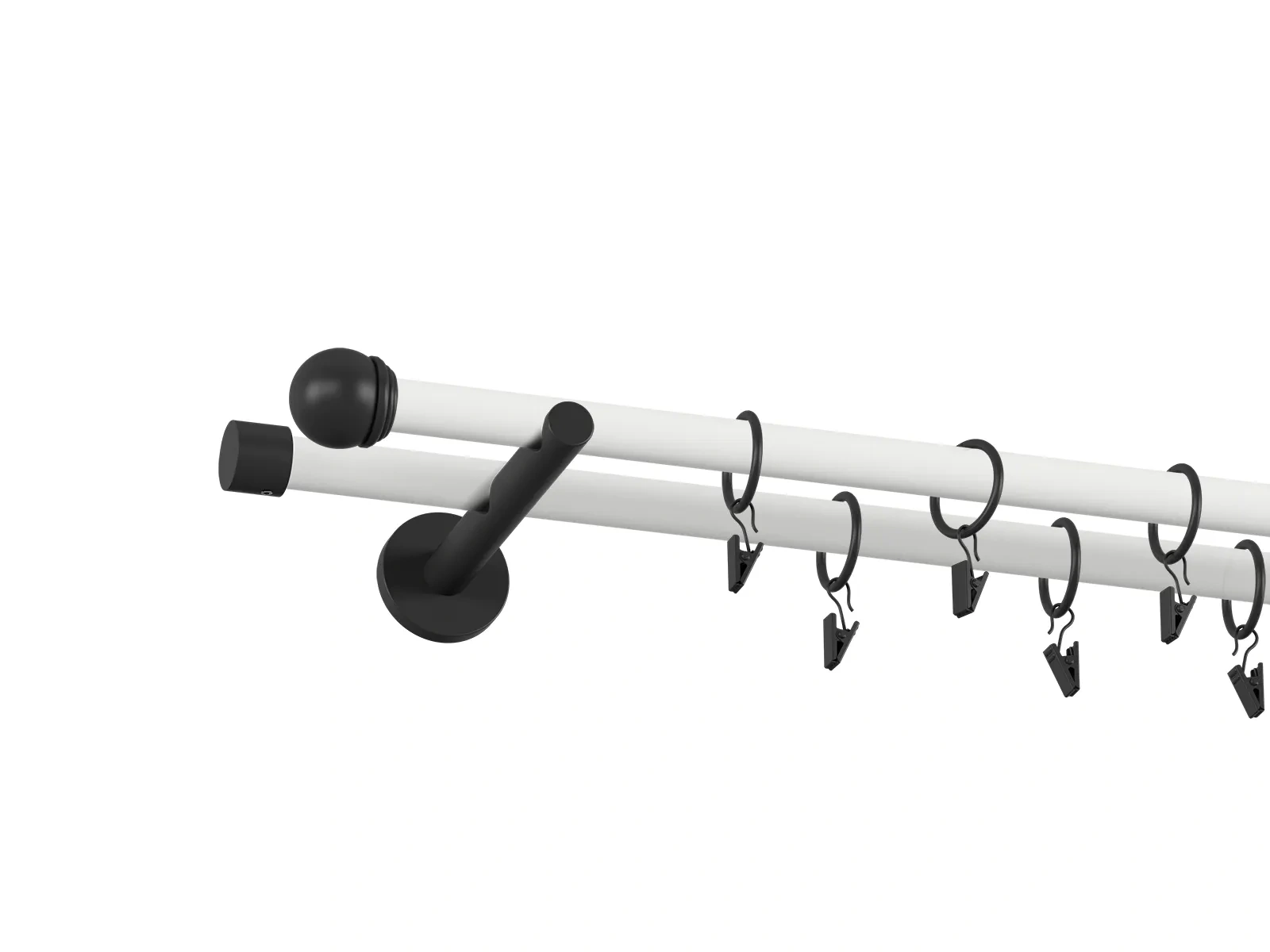 Na výber je viacero typov koncoviek a držiakov, čo umožňuje prispôsobiť garnižu presne podľa štýlu interiéru - od jednoduchých a nenápadných tvarov až po dizajnovejšie ukončenia, ktoré môžu slúžiť aj ako dekoratívny prvok. Pri prevedení bielo čiernej tyče je tyč biela a koncovky, držiaky a štipce s krúžkami čierne. Veľkou výhodou obyčajnej tyče je jej univerzálnosť. Ak máte závesy, v ktorých sú už našité kovové alebo textilné očká (krúžky), nie je potrebné dokupovať krúžky so štipcami. Záves stačí jednoducho nasunúť priamo na tyč, čo šetrí čas aj náklady a zároveň zabezpečuje čistý vzhľad.