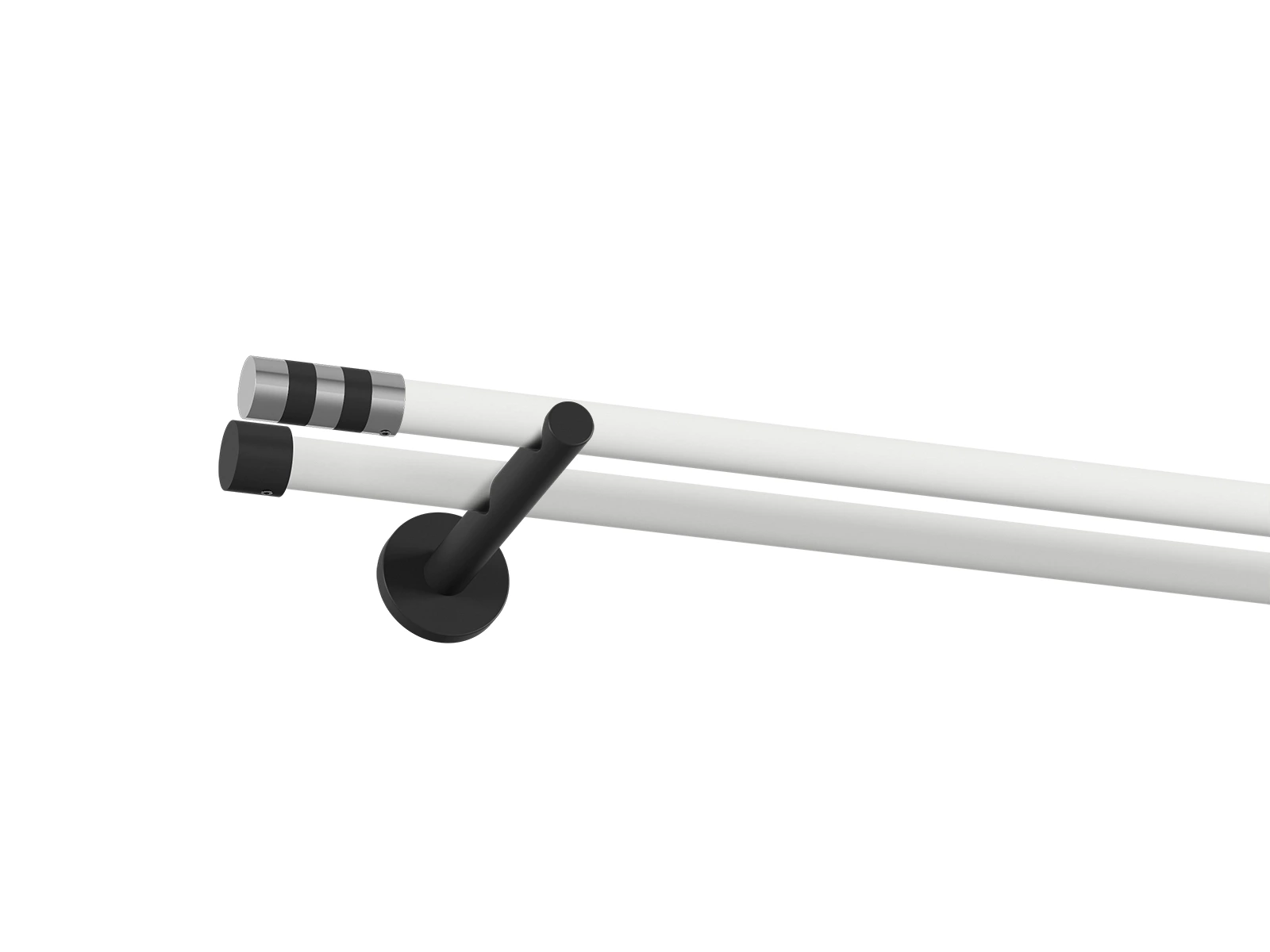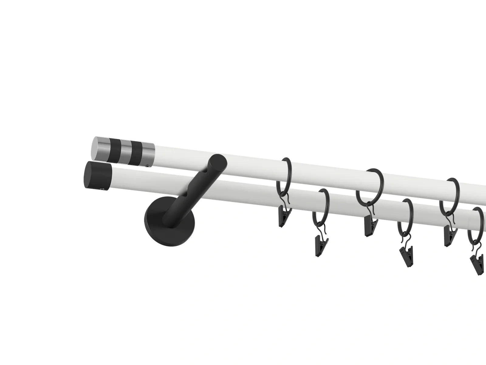 Na výber je viacero typov koncoviek a držiakov, čo umožňuje prispôsobiť garnižu presne podľa štýlu interiéru - od jednoduchých a nenápadných tvarov až po dizajnovejšie ukončenia, ktoré môžu slúžiť aj ako dekoratívny prvok. Pri prevedení bielo čiernej tyče je tyč biela a koncovky, držiaky a štipce s krúžkami čierne. Veľkou výhodou obyčajnej tyče je jej univerzálnosť. Ak máte závesy, v ktorých sú už našité kovové alebo textilné očká (krúžky), nie je potrebné dokupovať krúžky so štipcami. Záves stačí jednoducho nasunúť priamo na tyč, čo šetrí čas aj náklady a zároveň zabezpečuje čistý vzhľad.