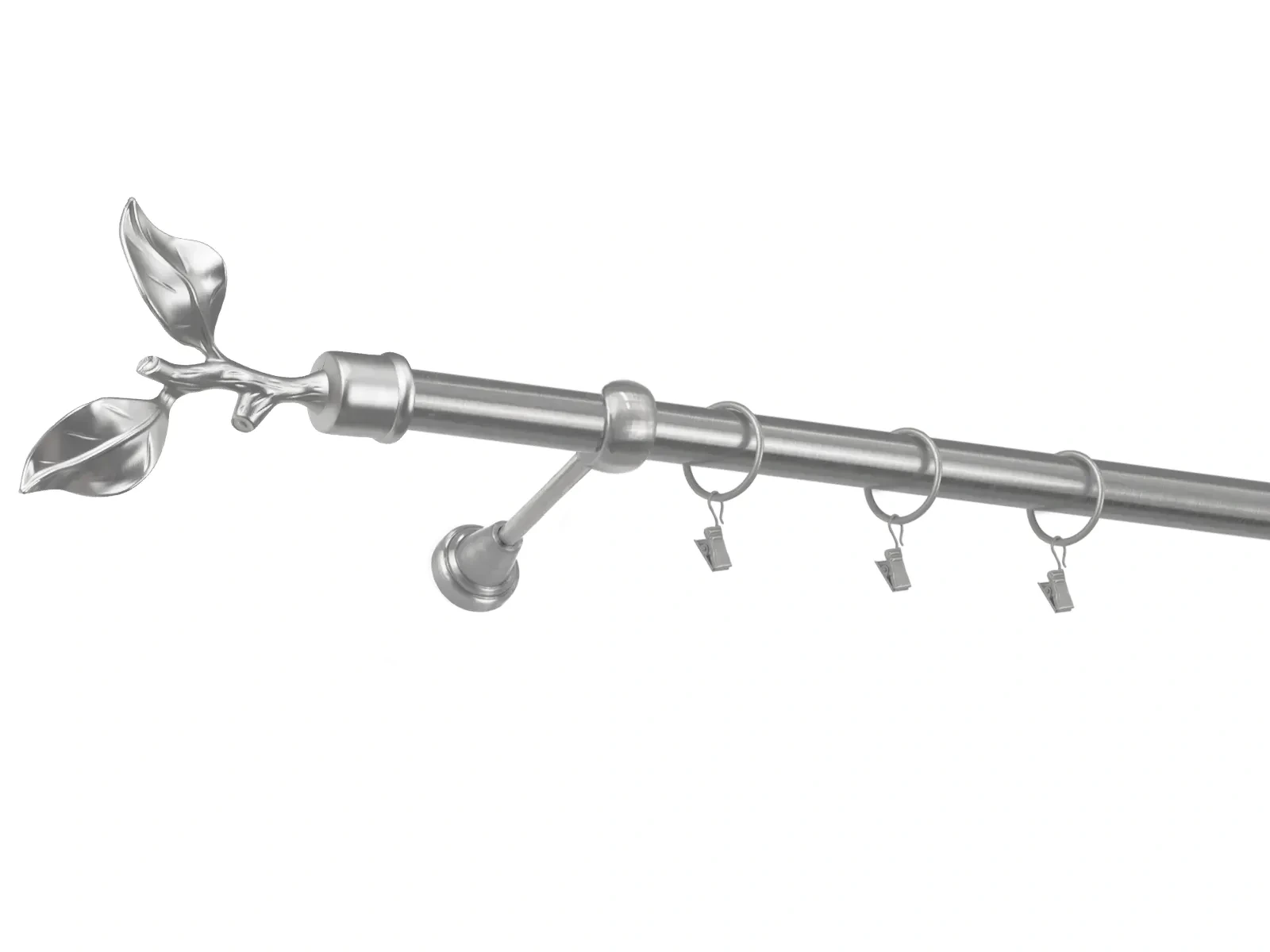 • V prípade, že ste si objednali ku garniži príslušenstvo, navlečte krúžky so štipcami na tyč., Následne dotiahnite poistné skrutky na držiaku, ktoré zabránia pohybu tyče.