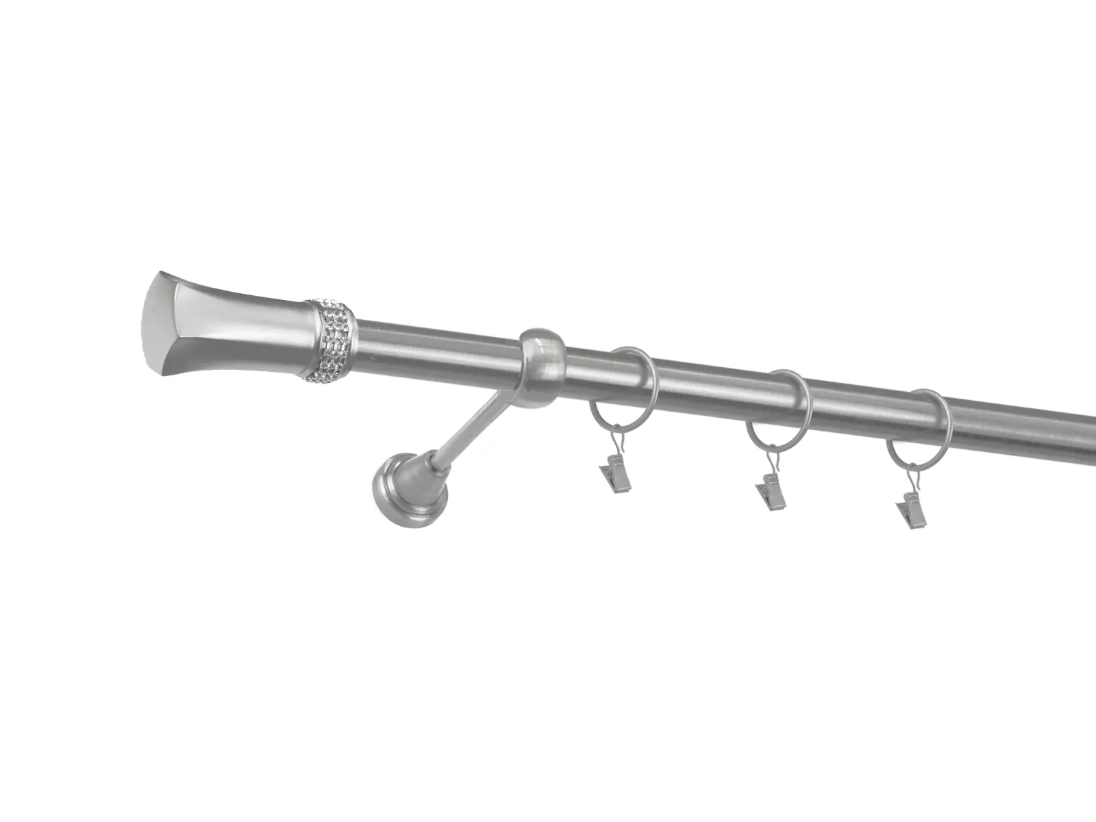 • Dĺžka 2400 mm - tyč 25mm - 2400mm - 1ks, držiak - 2ks, koncovka - 2ks, krúžok so štipcom - 23ks (pri výbere parametra príslušenstvo s krúžkami so štipcom), skrutky a hmoždinky na montáž