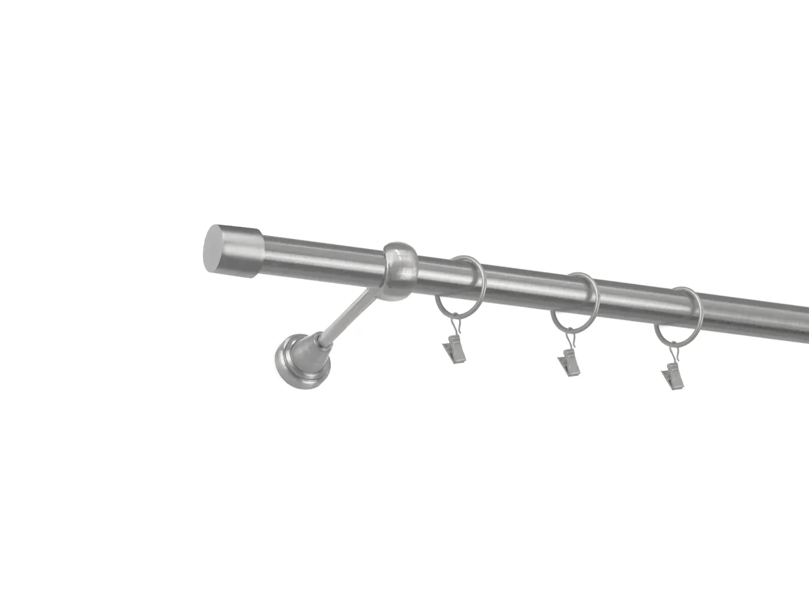 • V prípade, že ste si objednali ku garniži príslušenstvo, navlečte krúžky so štipcami na tyč., Následne dotiahnite poistné skrutky na držiaku, ktoré zabránia pohybu tyče.