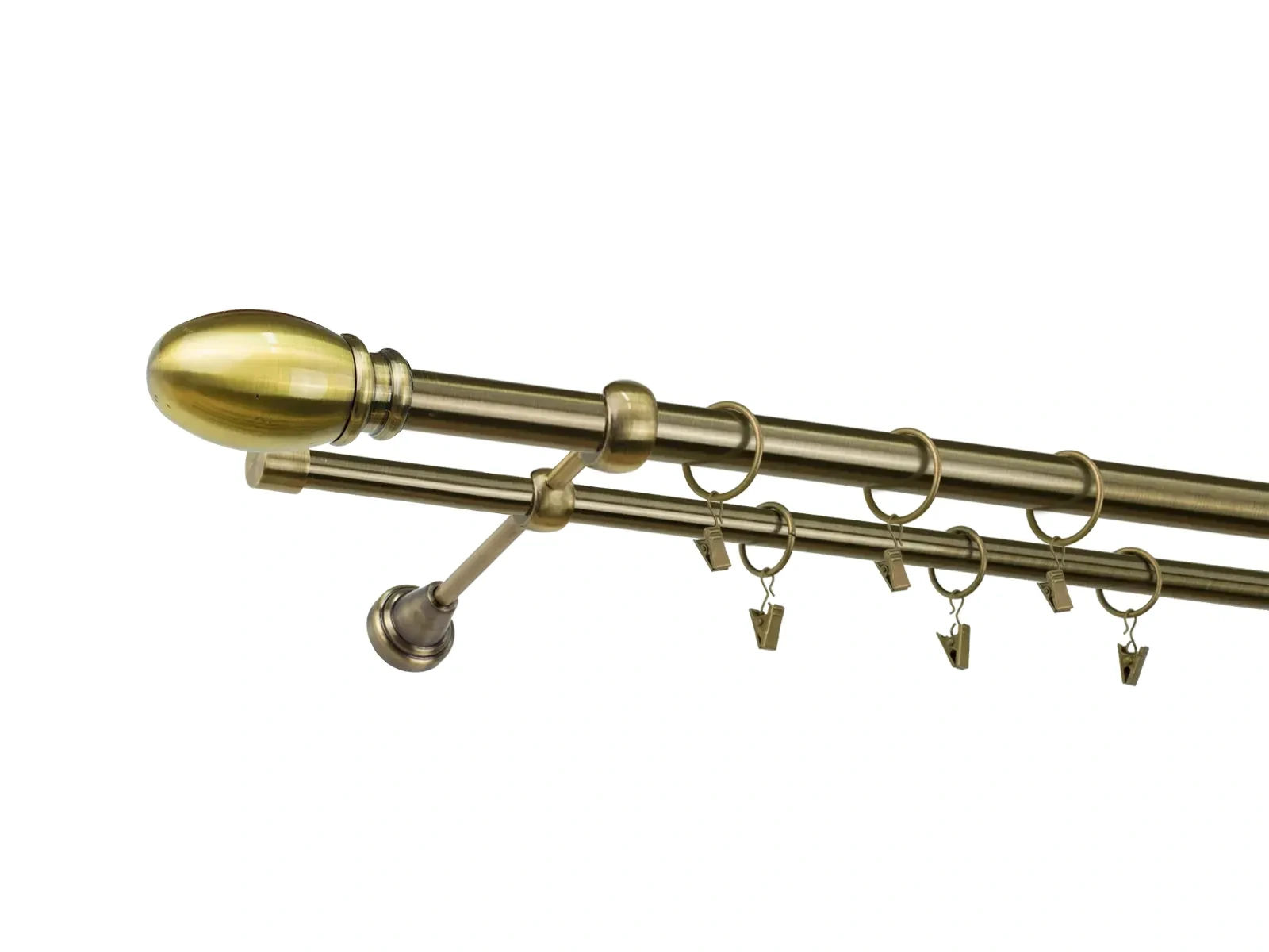 Krúžky a štipce sú vyrobené z kovu, čo zaručuje ich pevnosť, odolnosť a dlhodobé používanie bez deformácií. Počet krúžkov a štipcov je prispôsobený dĺžke garniže, aby bola zabezpečená optimálna funkčnosť a rovnomerné rozloženie závesov či záclon.