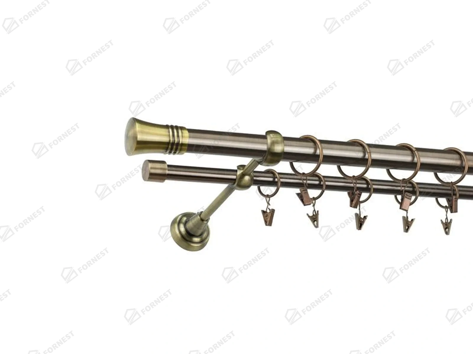 Kvalitné kovové garniže o priemere prednej tyče 25mm a zadnej 16mm. Všetky tyče, koncovky a držiaky sú s povrchovou úpravou galvanizácie.