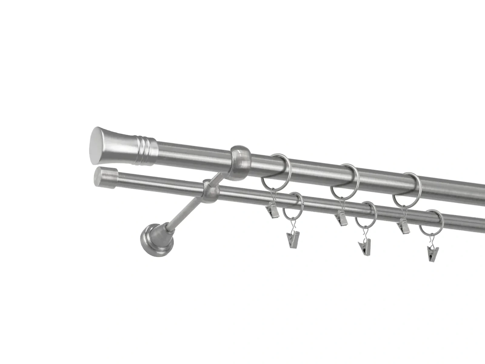 • Dĺžka 1200 mm - tyč 25mm - 1200mm - 1ks,  tyč 16mm - 1200mm - 1ks, držiak dvojitý - 2ks, koncovka - 2ks, koncovka zadná (PULLO) - 2ks, krúžok so štipcom - 22ks (pri výbere parametra príslušenstvo s krúžkami so štipcom), skrutky a hmoždinky na montáž