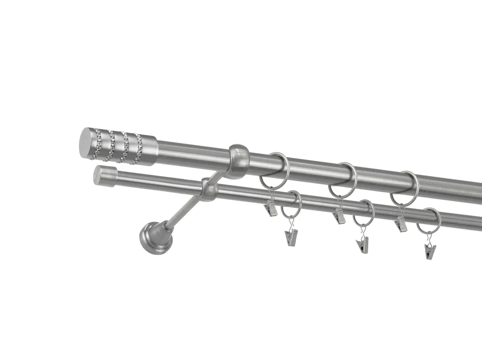 • Dĺžka 2200 mm - tyč 25mm - 2200mm - 1ks,  tyč 16mm - 2200mm - 1ks, držiak dvojitý - 2ks, koncovka - 2ks, koncovka zadná (PULLO) - 2ks, krúžok so štipcom - 42ks (pri výbere parametra príslušenstvo s krúžkami so štipcom), skrutky a hmoždinky na montáž