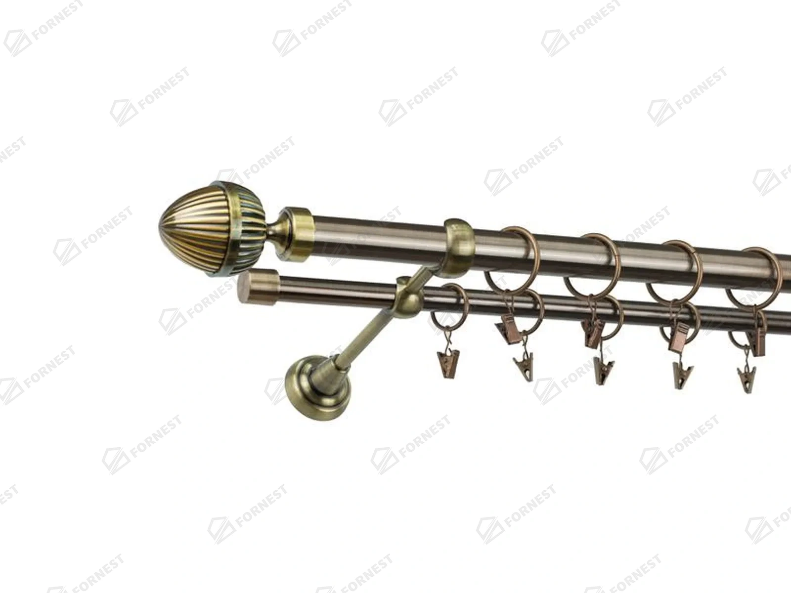 Kvalitné kovové garniže o priemere prednej tyče 25mm a zadnej 16mm. Všetky tyče, koncovky a držiaky sú s povrchovou úpravou galvanizácie.