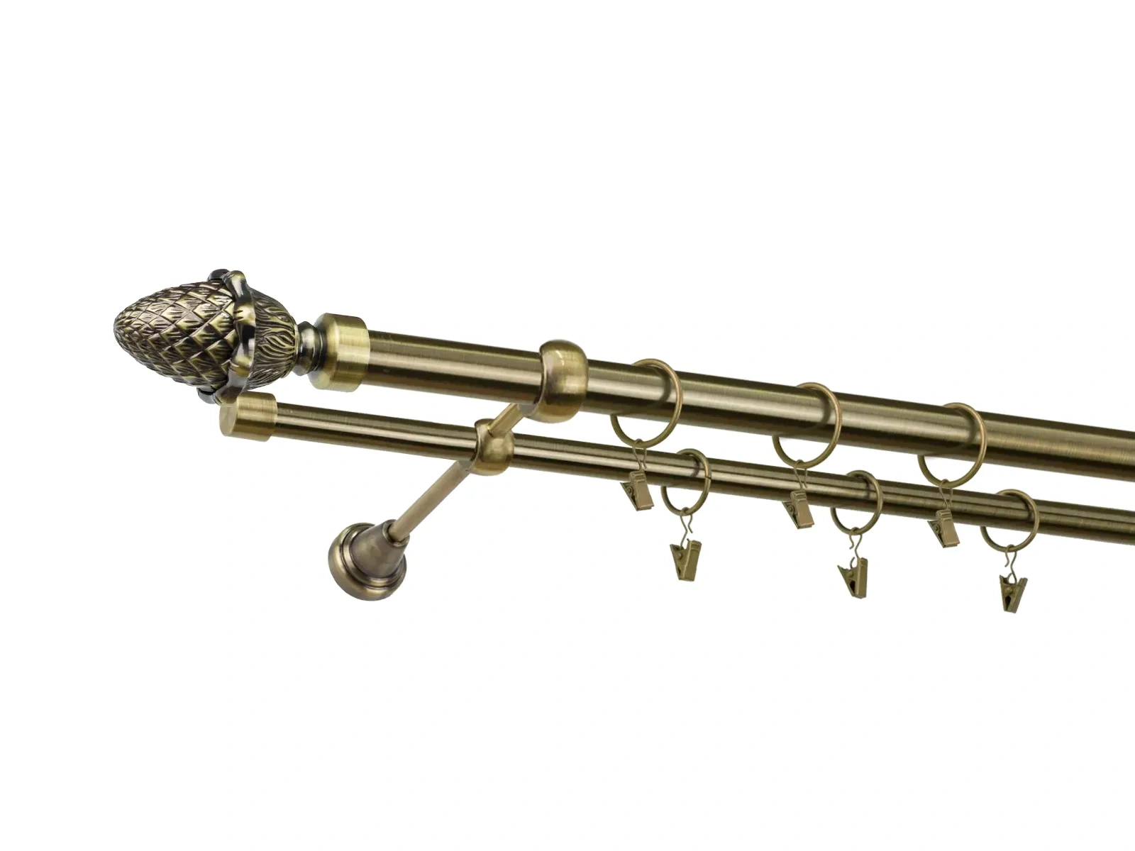 Krúžky a štipce sú vyrobené z kovu, čo zaručuje ich pevnosť, odolnosť a dlhodobé používanie bez deformácií. Počet krúžkov a štipcov je prispôsobený dĺžke garniže, aby bola zabezpečená optimálna funkčnosť a rovnomerné rozloženie závesov či záclon.