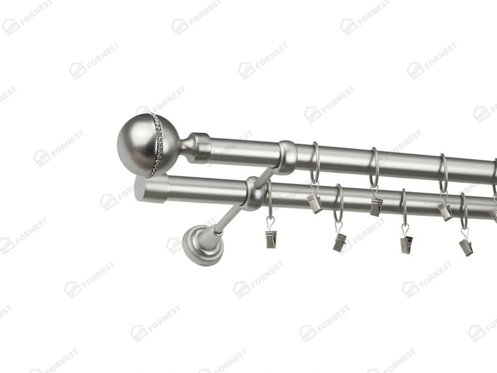 • Dĺžka 1800 mm - tyč 25mm - 1800mm - 2ks, držiak dvojitý - 2ks, koncovka - 2ks, koncovka zadná (PULLO) - 2ks, krúžok so štipcom - 34ks (pri výbere parametra príslušenstvo s krúžkami so štipcom), skrutky a hmoždinky na montáž