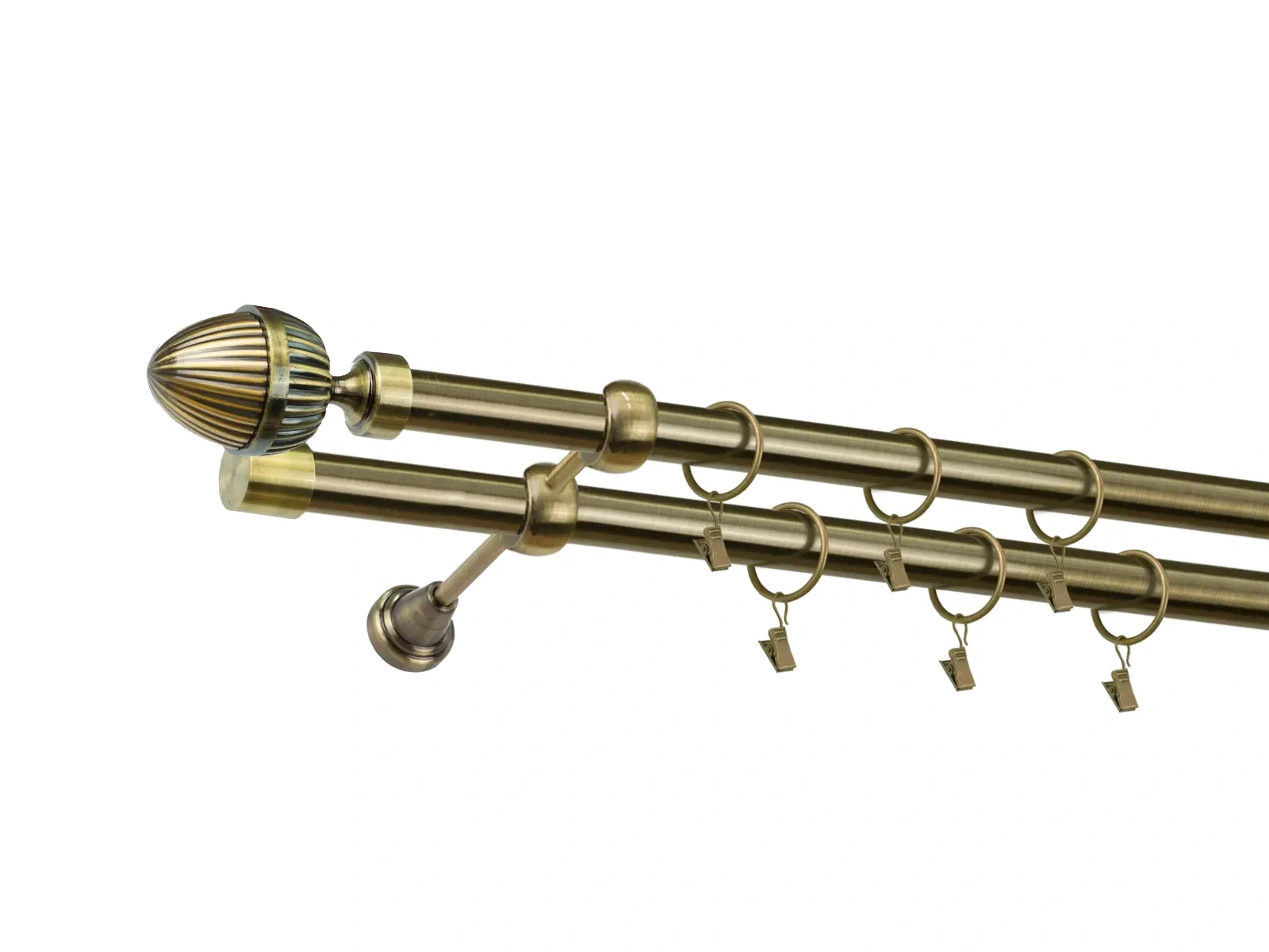 Krúžky a štipce sú vyrobené z kovu, čo zaručuje ich pevnosť, odolnosť a dlhodobé používanie bez deformácií. Počet krúžkov a štipcov je prispôsobený dĺžke garniže, aby bola zabezpečená optimálna funkčnosť a rovnomerné rozloženie závesov či záclon.