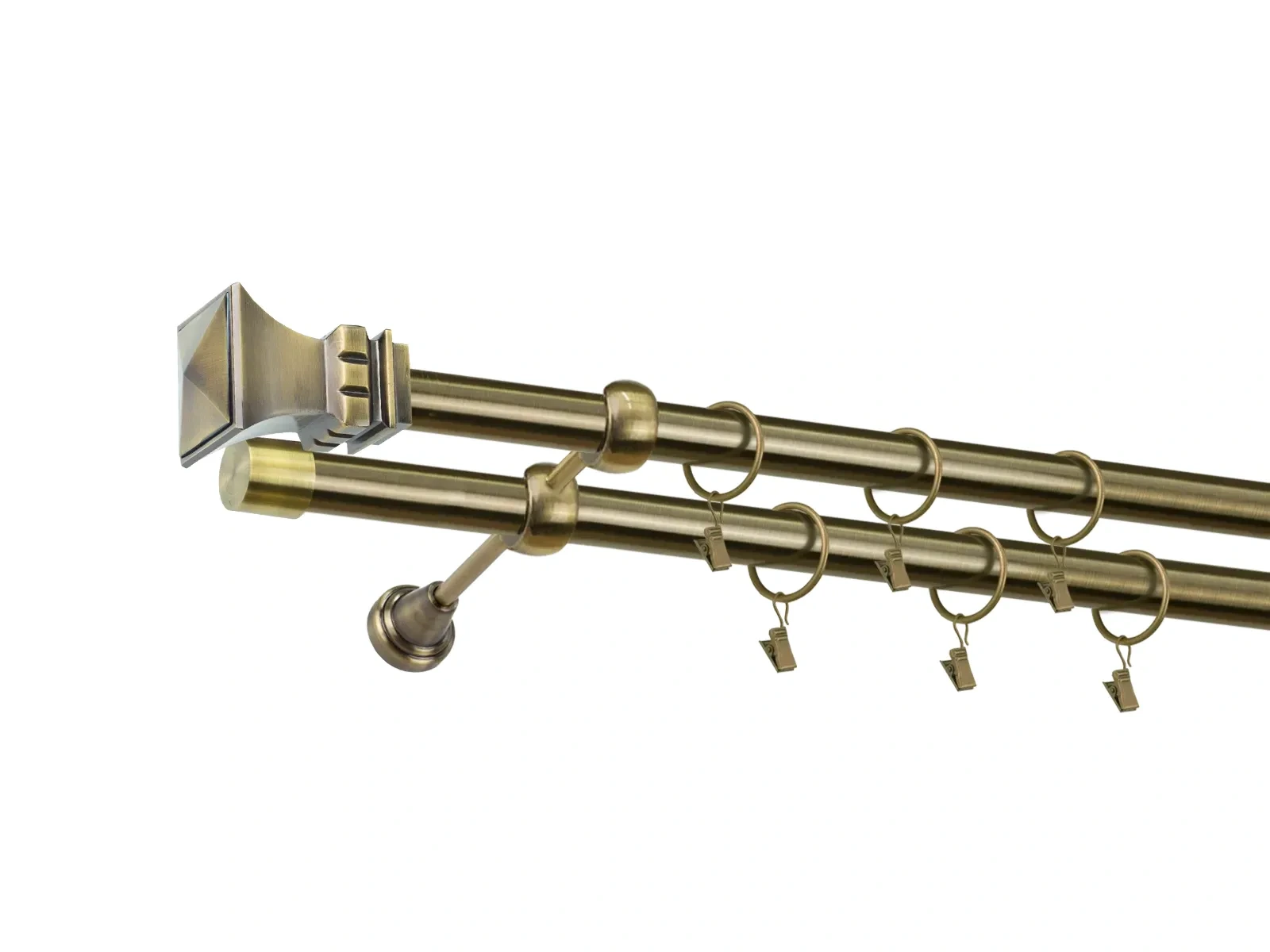 Kvalitné kovové dvojradové garniže o priemere tyčí 25x25mm. Všetky tyče, koncovky a držiaky sú s povrchovou úpravou galvanizácie.