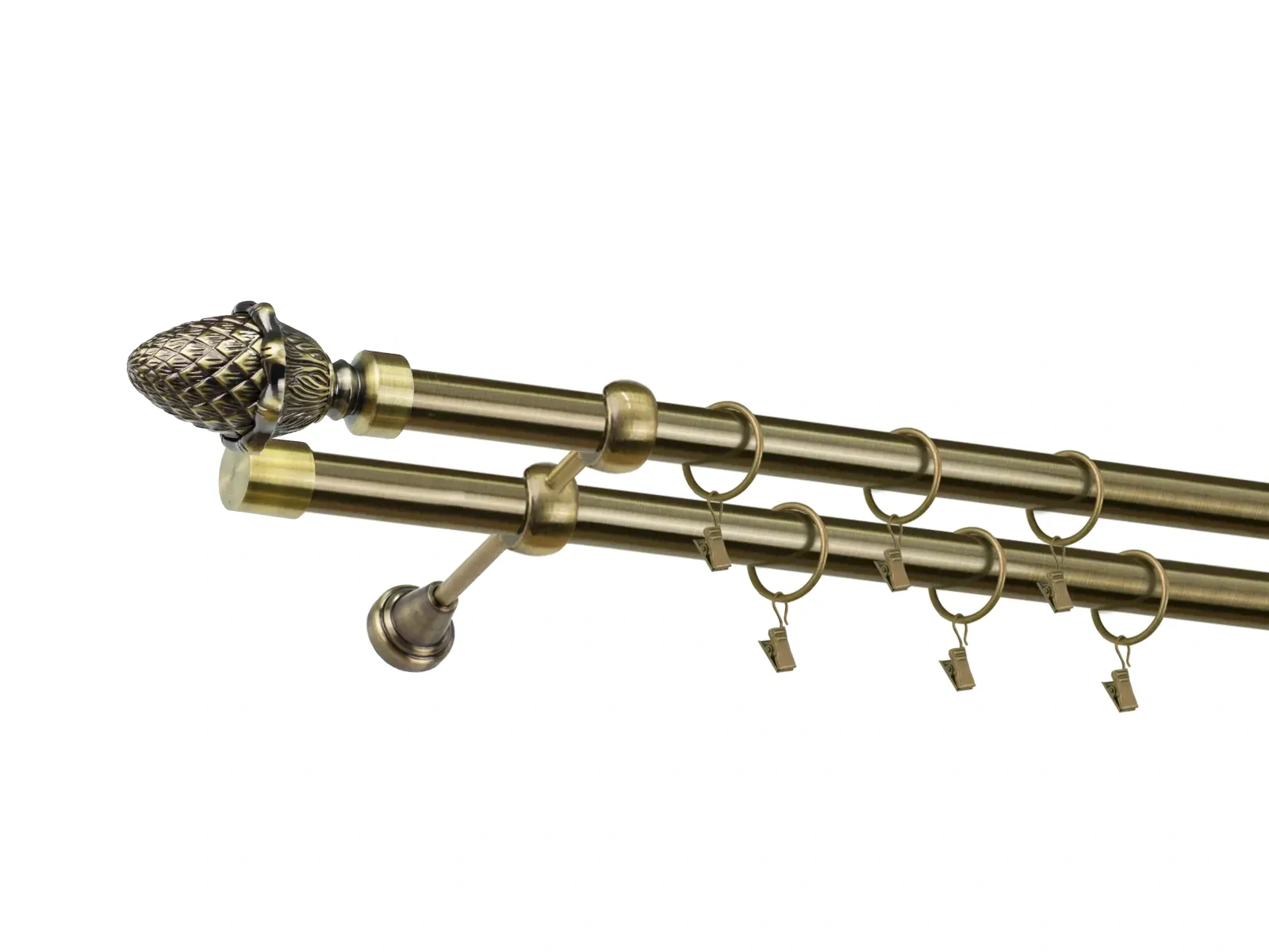 Krúžky a štipce sú vyrobené z kovu, čo zaručuje ich pevnosť, odolnosť a dlhodobé používanie bez deformácií. Počet krúžkov a štipcov je prispôsobený dĺžke garniže, aby bola zabezpečená optimálna funkčnosť a rovnomerné rozloženie závesov či záclon.