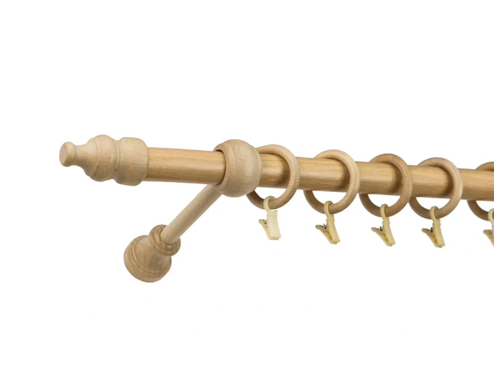 Farebná paleta zahŕňa obľúbené odtiene - buk, borovica, dub zlatý, orech a jelša. Tieto dekory verne imitujú štruktúru dreva a umožňujú ľahké zladenie s nábytkom, podlahami či ďalšími drevenými prvkami v interiéri. Pri odtieni borovica využívame totožné držiaky a koncovky ako pri odtieni buk. Samotné tyče sú v danom dekore, ale krúžky a koncovky sú morené.
