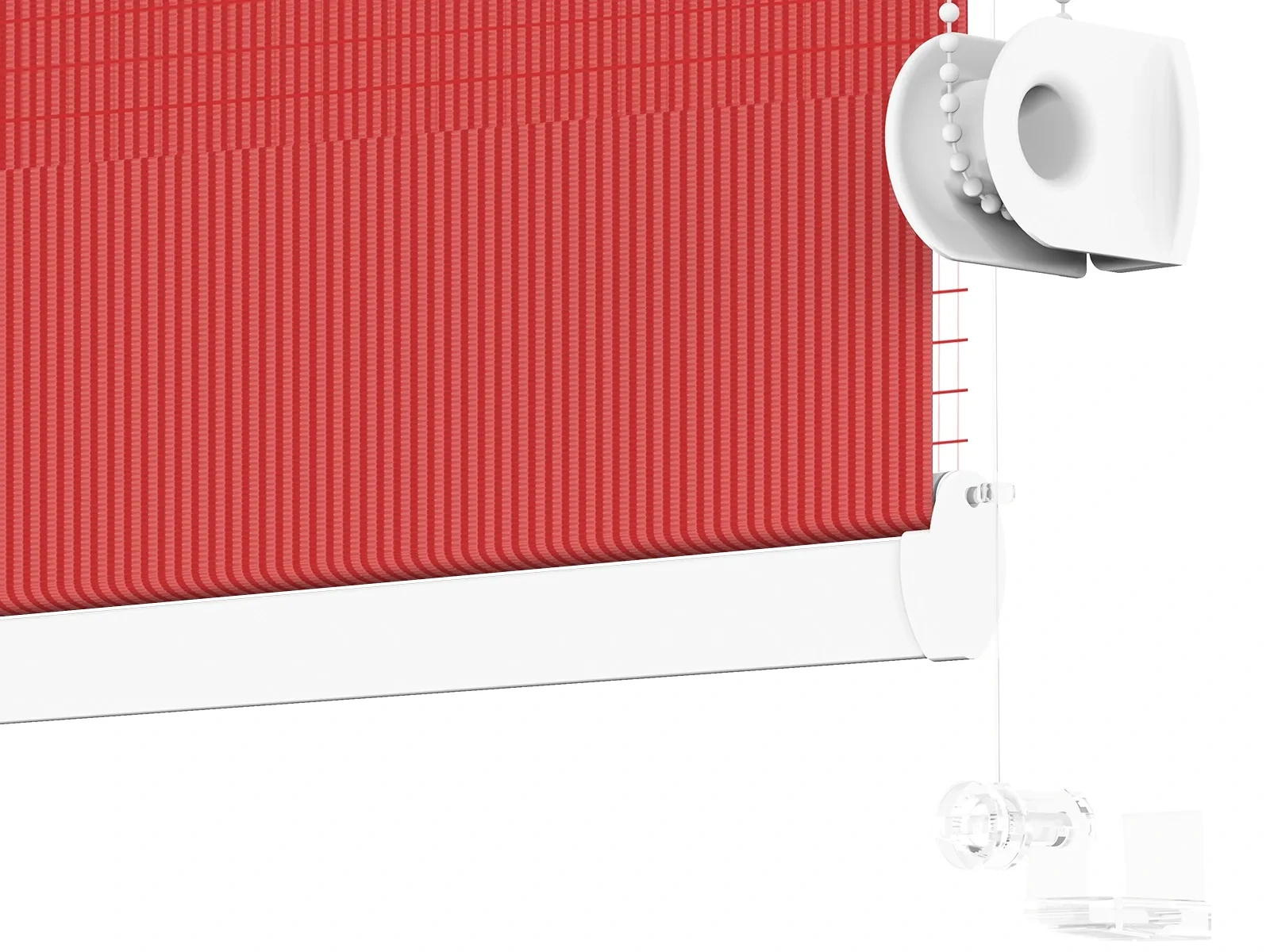 • Retiazku ťaháte kolmo dole, je potrebné ju úplne pretočiť. Po pretočení znova nasadíte krytky a roletu nasadíte na rám okna. Nasadenú roletu spustíte úplne dole a na retiazku nasadíte doraz (tým zabránite tomu, aby sa roleta dokázala spustiť nižšie ako má).