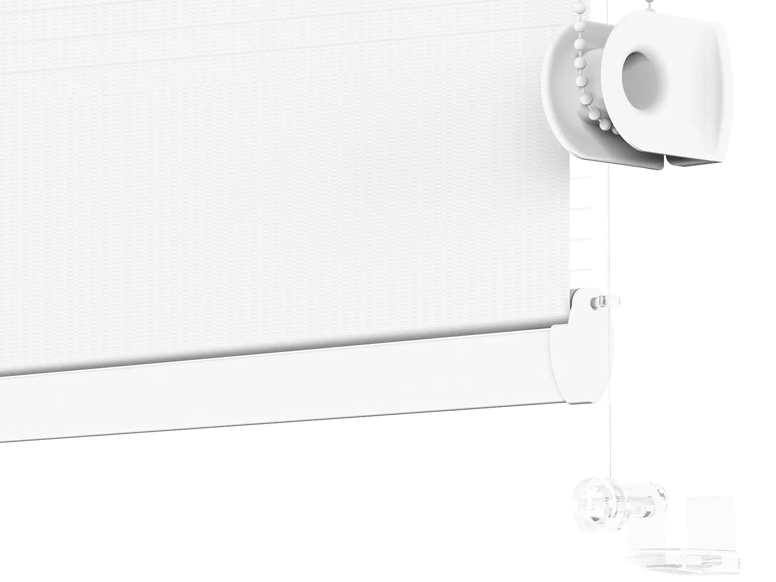 • Retiazku ťaháte kolmo dole, je potrebné ju úplne pretočiť. Po pretočení znova nasadíte krytky a roletu nasadíte na rám okna. Nasadenú roletu spustíte úplne dole a na retiazku nasadíte doraz (tým zabránite tomu, aby sa roleta dokázala spustiť nižšie ako má).