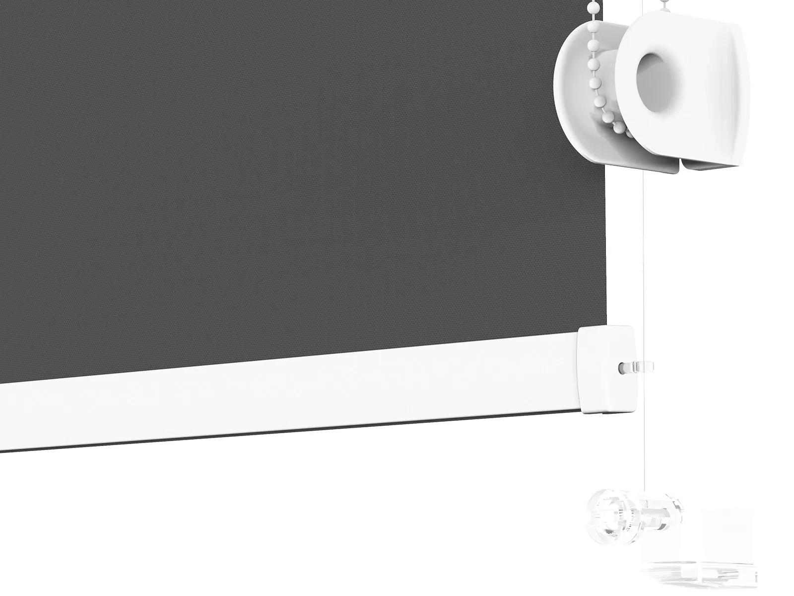 • Retiazku ťaháte kolmo dole, je potrebné ju úplne pretočiť. Po pretočení znova nasadíte krytky a roletu nasadíte na rám okna. Nasadenú roletu spustíte úplne dole a na retiazku nasadíte doraz (tým zabránite tomu, aby sa roleta dokázala spustiť nižšie ako má).