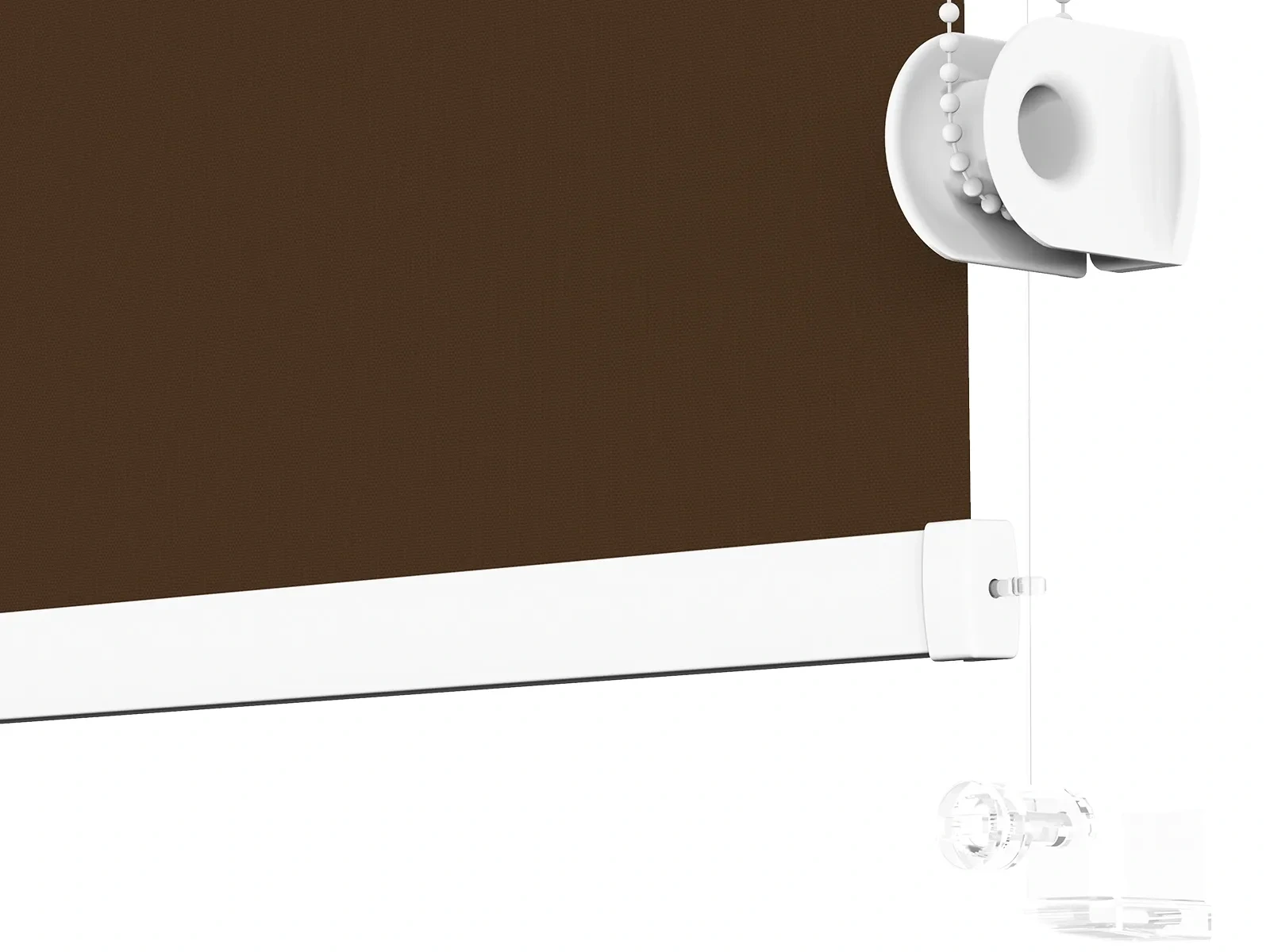 • Retiazku ťaháte kolmo dole, je potrebné ju úplne pretočiť. Po pretočení znova nasadíte krytky a roletu nasadíte na rám okna. Nasadenú roletu spustíte úplne dole a na retiazku nasadíte doraz (tým zabránite tomu, aby sa roleta dokázala spustiť nižšie ako má).
